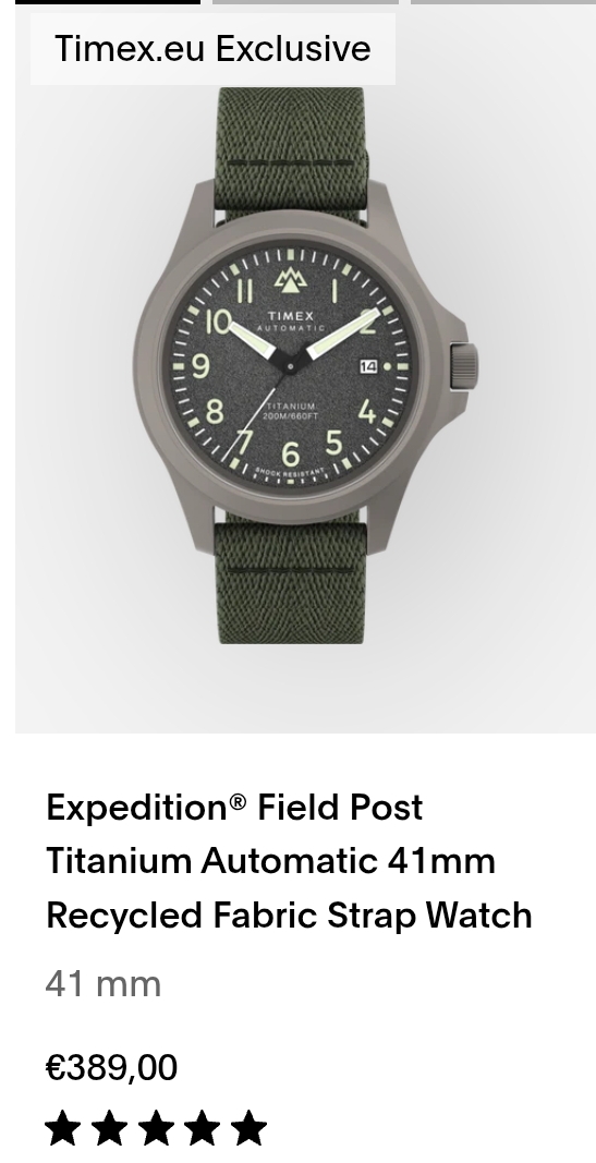 >>18613654I just checked it and the Timex equivalent, the Mk1, costs a bit less than the Seiko 5 (279€ vs 310€), but without the day date complication, acrylic cristal instead of actual glass, and only 50atm. I never owned a Timex before so I can't judge the general quality and the reliability, but other than that it doesn't seem clearly superior to the Seiko to me.