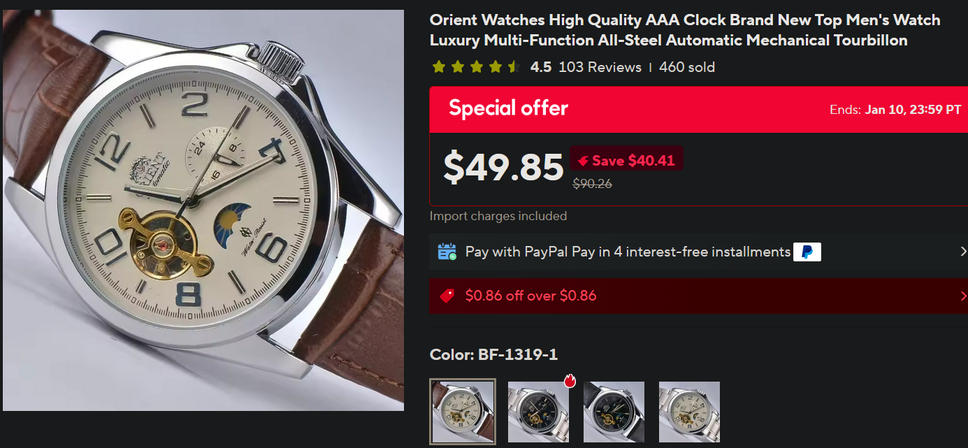>>18614245I saved 50% they said. How is it not Orient though? And why did so many people say they enjoyed it and sent in pictures with their review. It doesn't come in a box. That seemed to be a big complaint. I don't care about that.