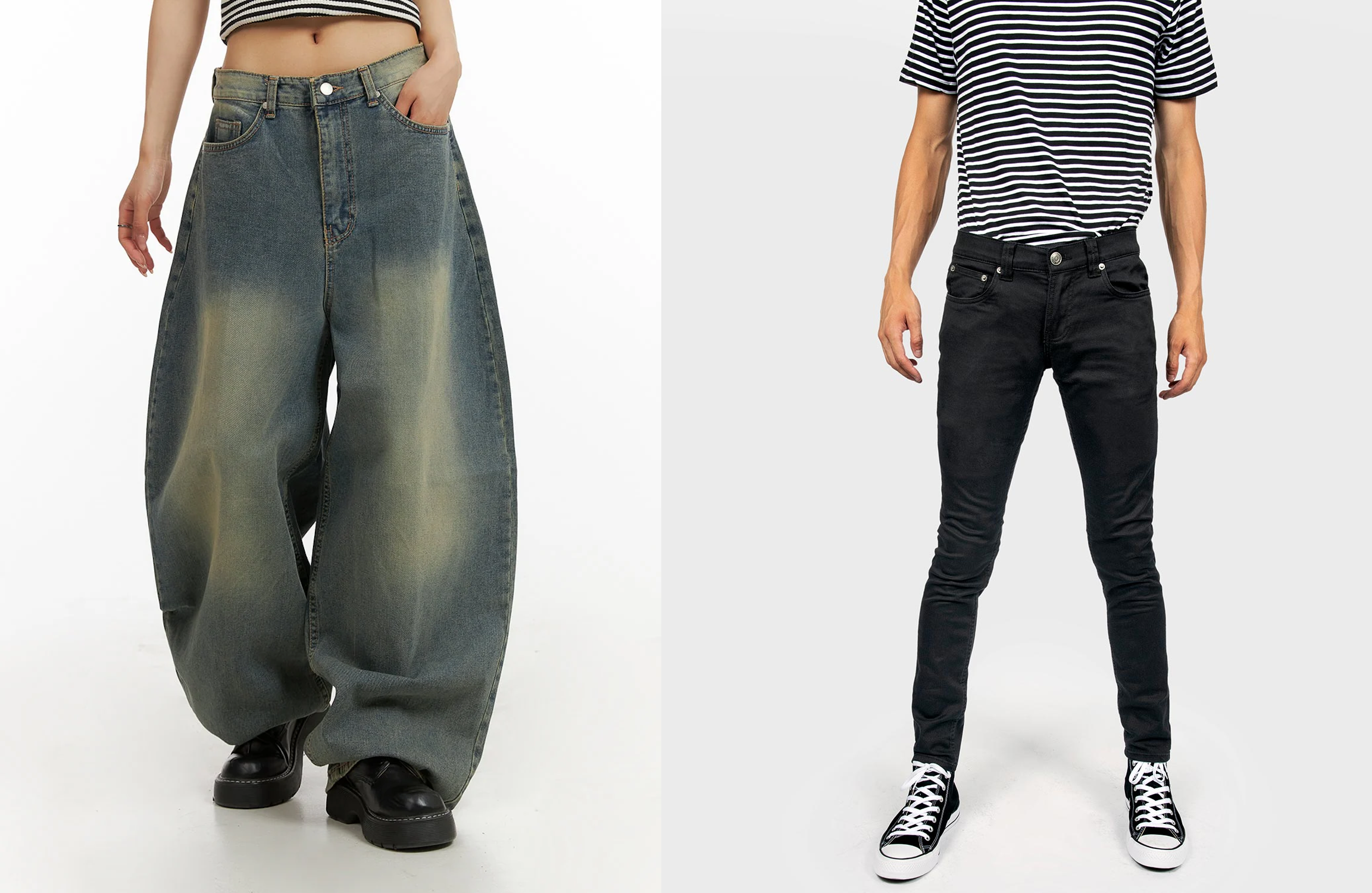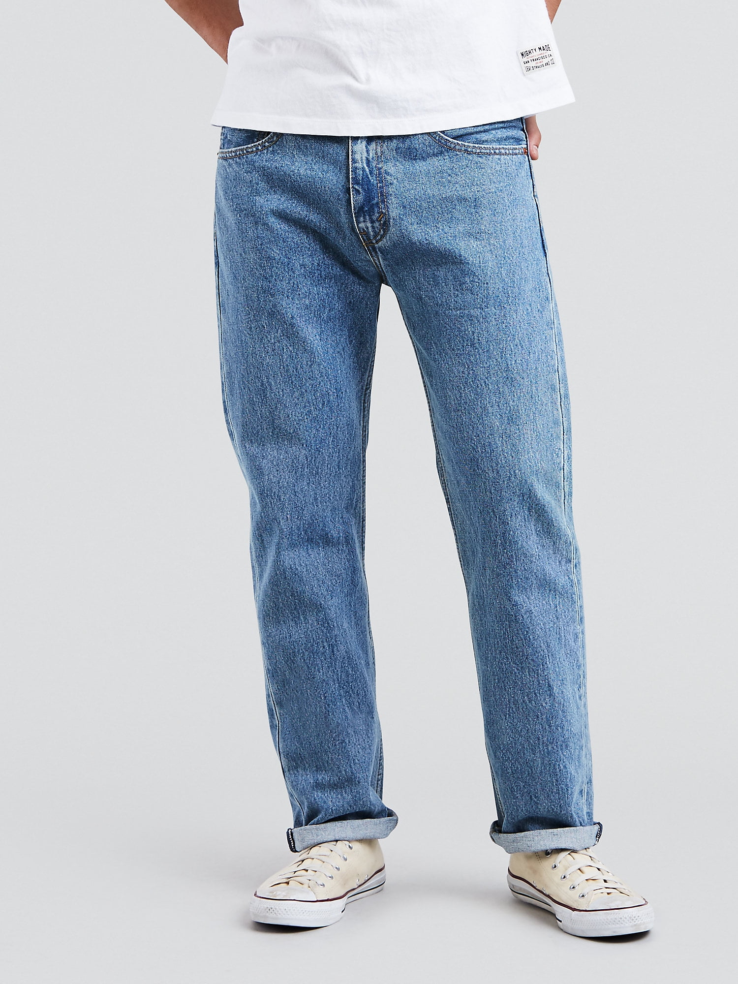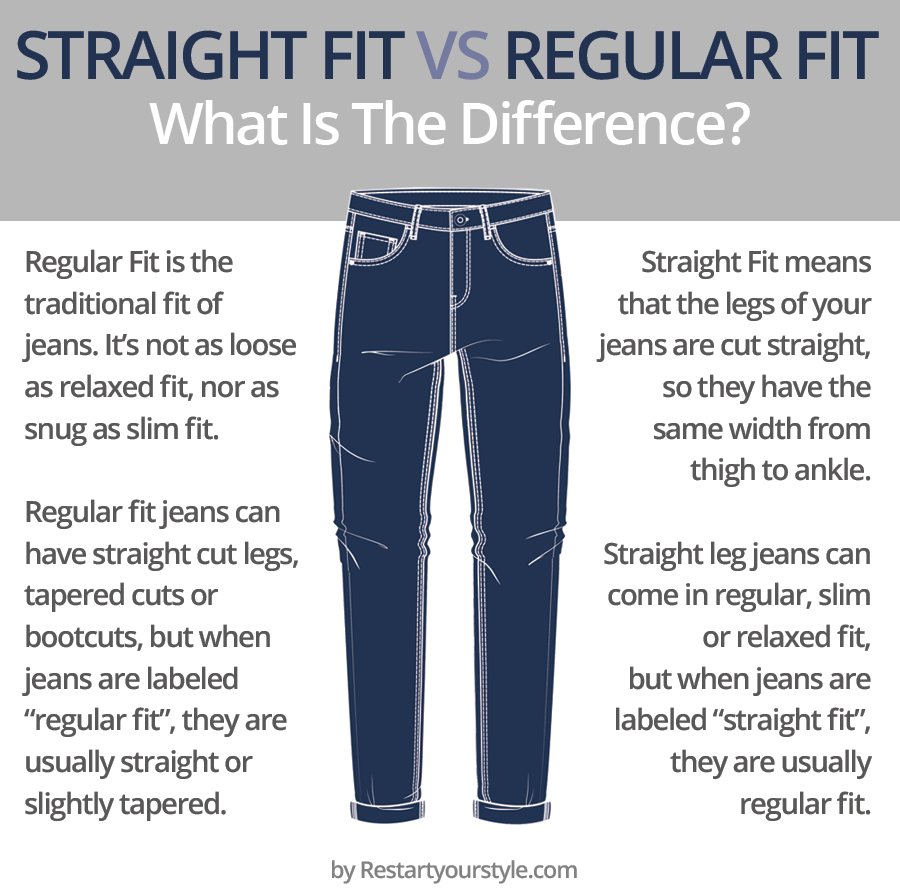 >>18619863A regular fit is straight fit but with a gradual taper all along its length from the inseam, similar to dress pants. It's roomy in the hips and thighs but a bit tapered below the knees, but not as snug as tapered or carrot fit. The leg opening in regular fit is around 7". In straight fit it's usually 8" and above.