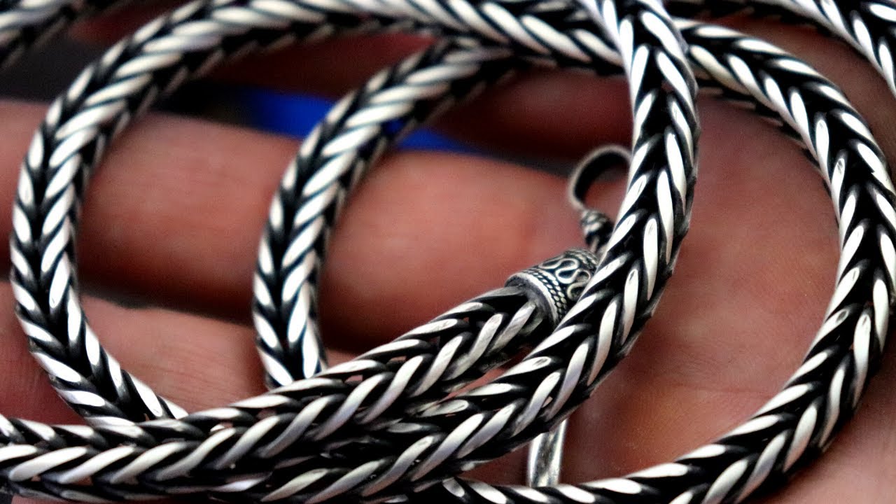 >>18633315is there a smell? magnetic attraction?definitely looks silver, in the franco/foxtail style. it's not ugly at all dude, you just need to detranish it. it may be thai. hopefully not indian but it looks 925 but there's a possibility it's 999. .950 is ideal for strength and appearance due to reduced copper content.you can detarnish it by either getting the chemical kits or you can get some aluminum foil, shiny side up IIRC, boiling some water and dumping baking soda in the hot water with the chain and the tarnish will transfer to the foil. you may have to do it a few times if its heavily tarnished. i think you should just wear it honestly, it's handsome. that's what i like about silver, the designs are more unique and varied than high quality mass produced gold chains.i tire of the same old rope, franco, cuban flat curb shit in gold. here's a small sample of what i most commonly wear >>18633118i've picked up some 18k pendants since then and i plan to get a silver moissanite ring or something and some signets