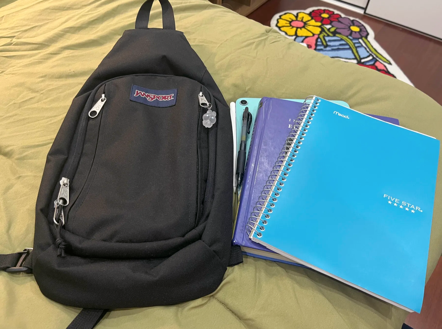 i bought this jansport crossbody bag for $35 bucks on amazon and its perfect. Can fit my tablet, textbook, and notebook and I can flip it around really quickly for the train/bus.