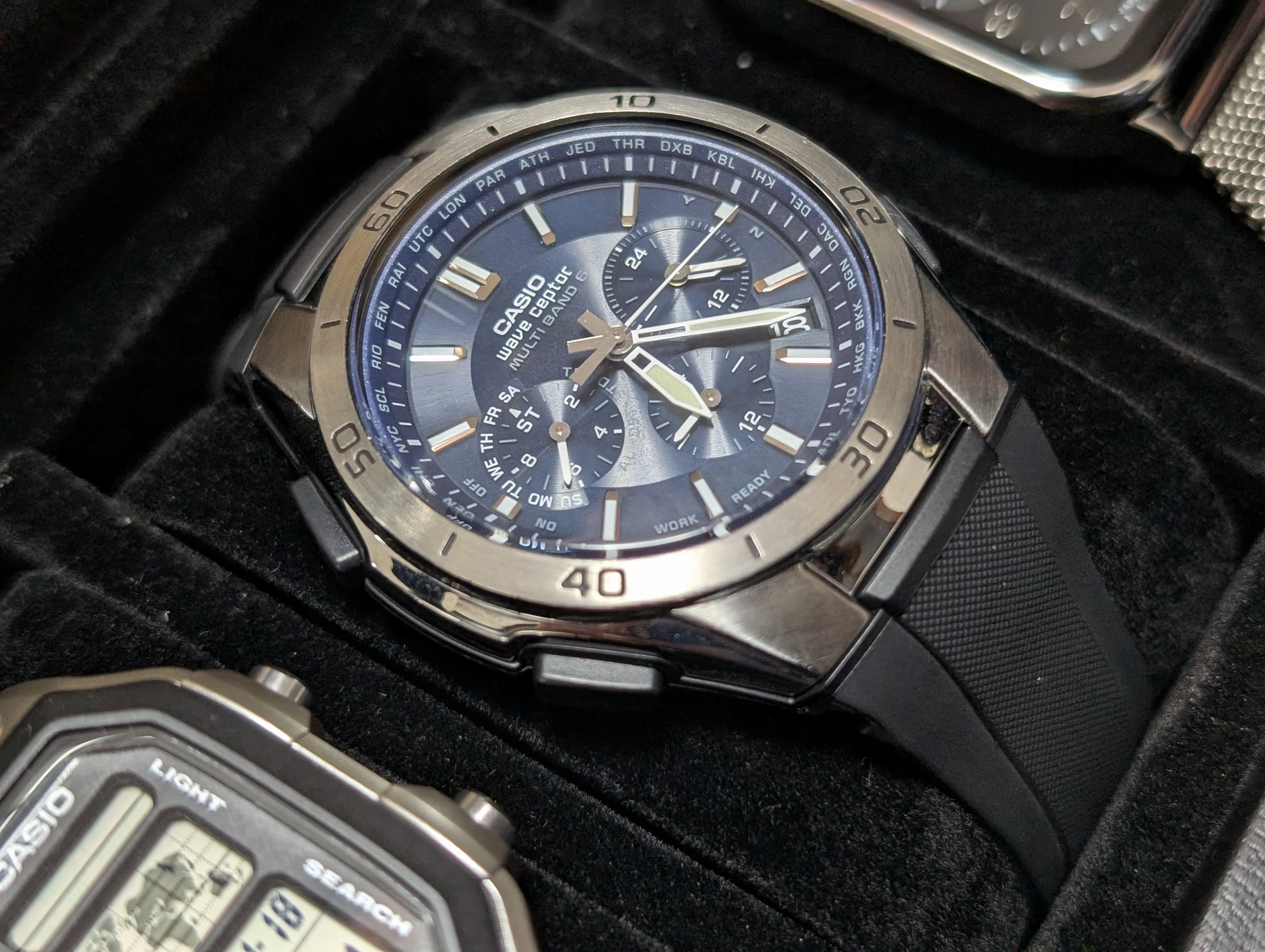Newest member of the family: navy blue Casio Wave Ceptor WVQ-M410found at the local secondhand store for approx $28