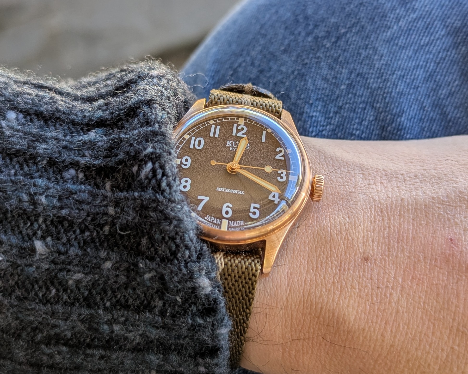 >>18636226Thanks, I'm enjoying it and find Kuoe to be a really solid value, though the overall finishing of this one isn't on the same level as the Royal Smith 900-06 I have from them. Regardless looking forward to see how the bronze ages. That said would have gone for a bronze Oris Big Crown if they came in smaller sizes desu senpai.>t. wristlet >>18636236Not leather, though it is textured. >>18636318Kek I hadn't noticed the size of it until you pointed it out. It's not as noticeable in person.