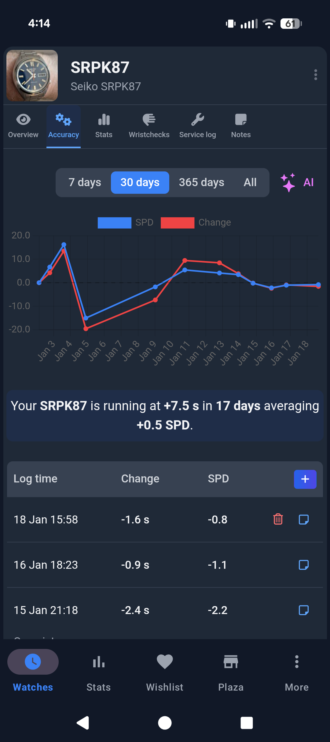 Just under 3 weeks of ownership. Still a relatively high beat error around 1.3ms, but runs great crown up and on wrist.