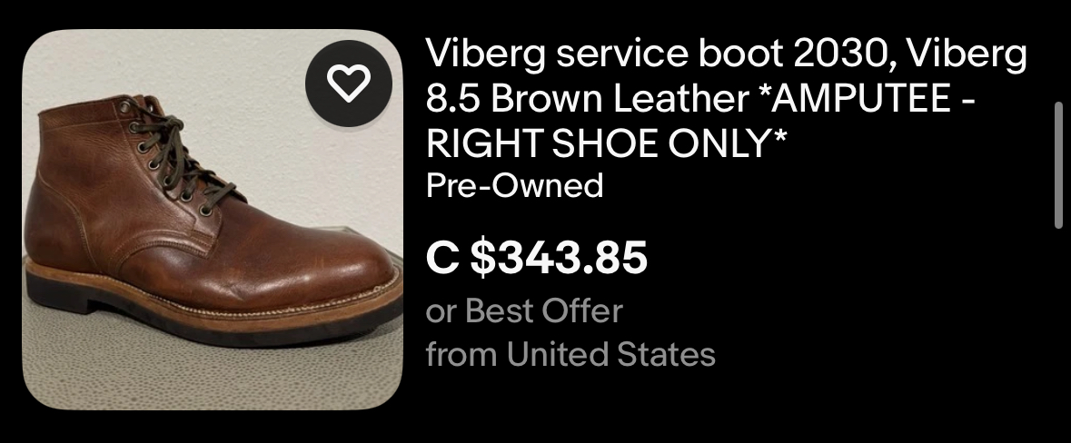 >>18636847>has anyone ever bought used footwear before?Yes, but "used" has a big scale. I've bought boots that were used for photoshoots which hardly showrd signs of use. Boots that were used once or twice before the owner either realized he got the wrong size or didn't understand the break-in period.Once I bought a heavily worn pair of a boot I wanted for cheap, used it a couple times until I was sure about sizing and then resold them for double what I paid for them.I always disinfect the inside, regardless.