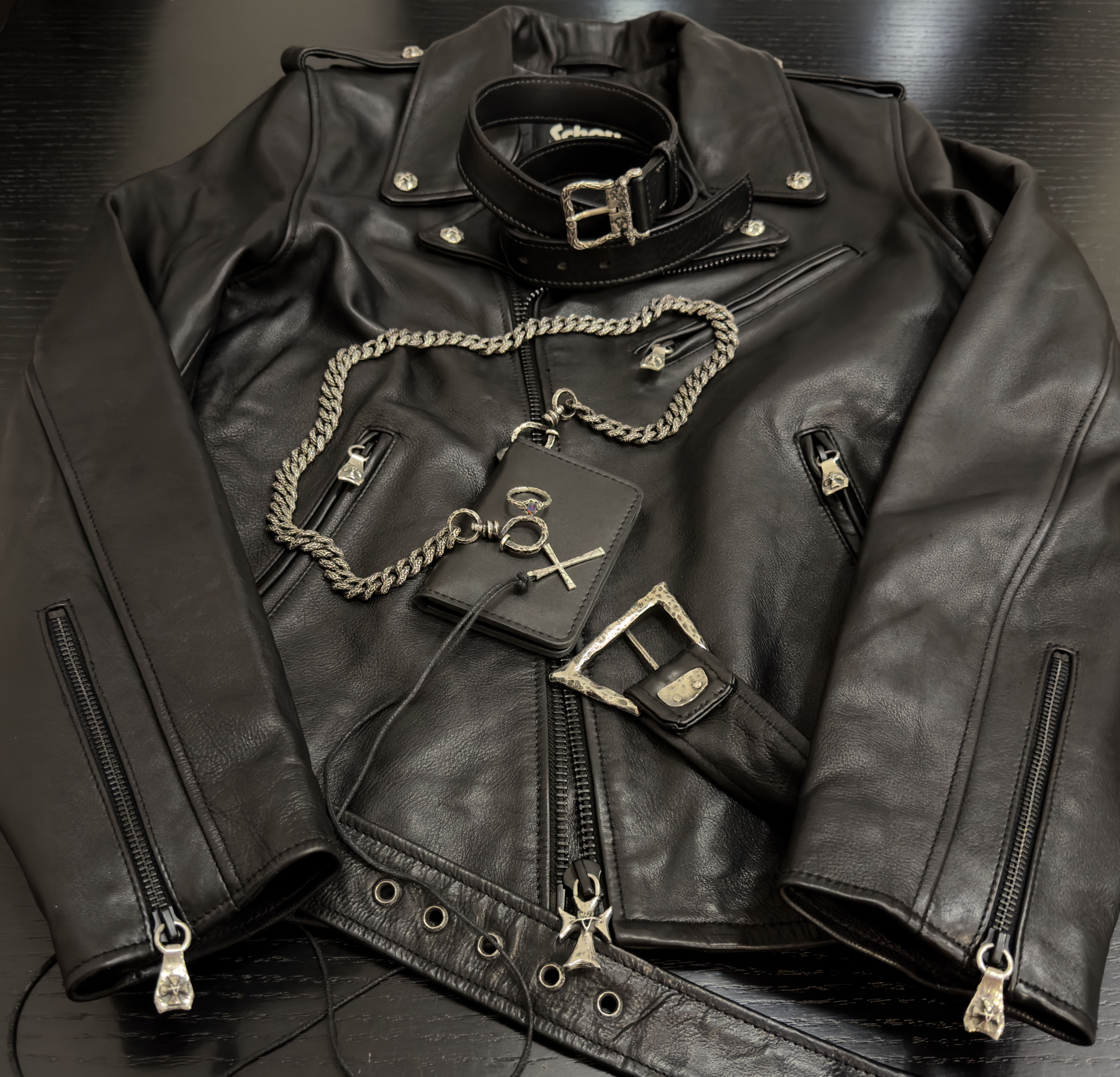 >>186436645’9 108lb perfecto enjoyer here, I’d argue that leaning into the obvious LARP isn’t necessarily a bad thing, it’s only cringe if you let it be such.picrel my small collection of silver and leather custom pieces, jacket is a perfecto with oxidised silver hardware.