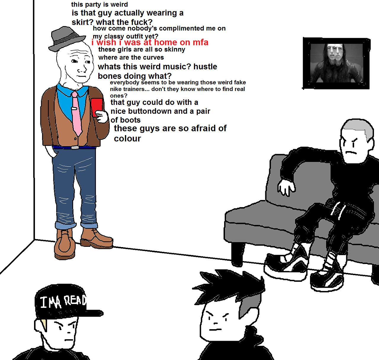 >>18654422You can literally replace the Rick characters with anything else yet keep the Wojak and the point still stands. Just about every general thread aside from hair and skincare threads are described in that Wojak standing in the corner and faggots still haven’t moved on. The weirdest part is how militant people are on this board now stating you must look like that or else you’re called a child or a nigger, which is nothing but gaslighting and lies.