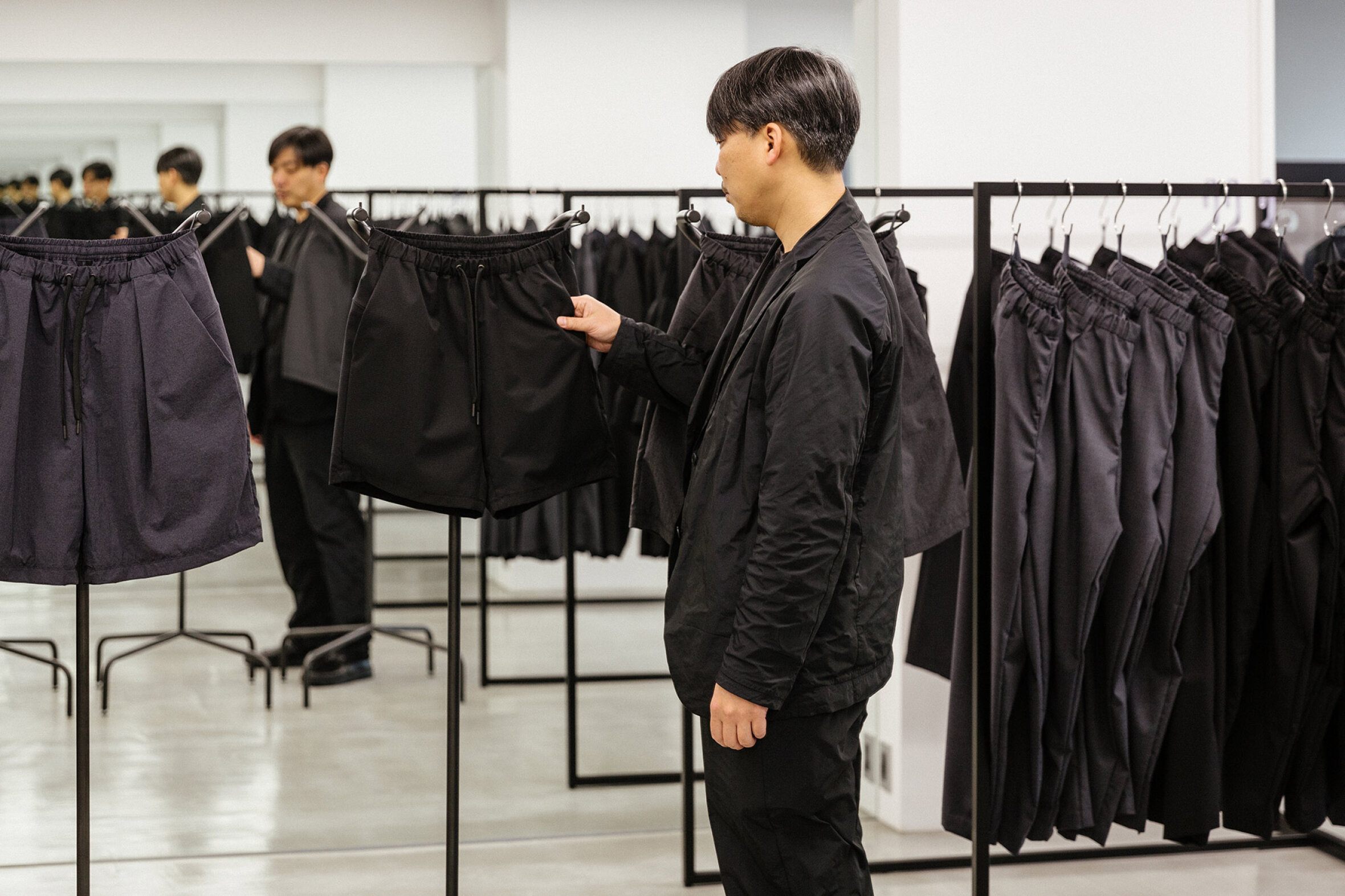 >>18661145Believe me, that could also work in the US in a professional setting as well. It’s a modernized and stripped-down version of “menswear” and dress clothes. Take a blazer for example. Remove all the frills and make it comfortable. Remove the lapels, turn buttons into a zipper, and lighten the shoulders. Shoes wouldn’t have laces. Instead they just slip on. A button-down would be a simple turtleneck that fits like a tee. It’s like putting the “suit” in tracksuit. Or vice versa.