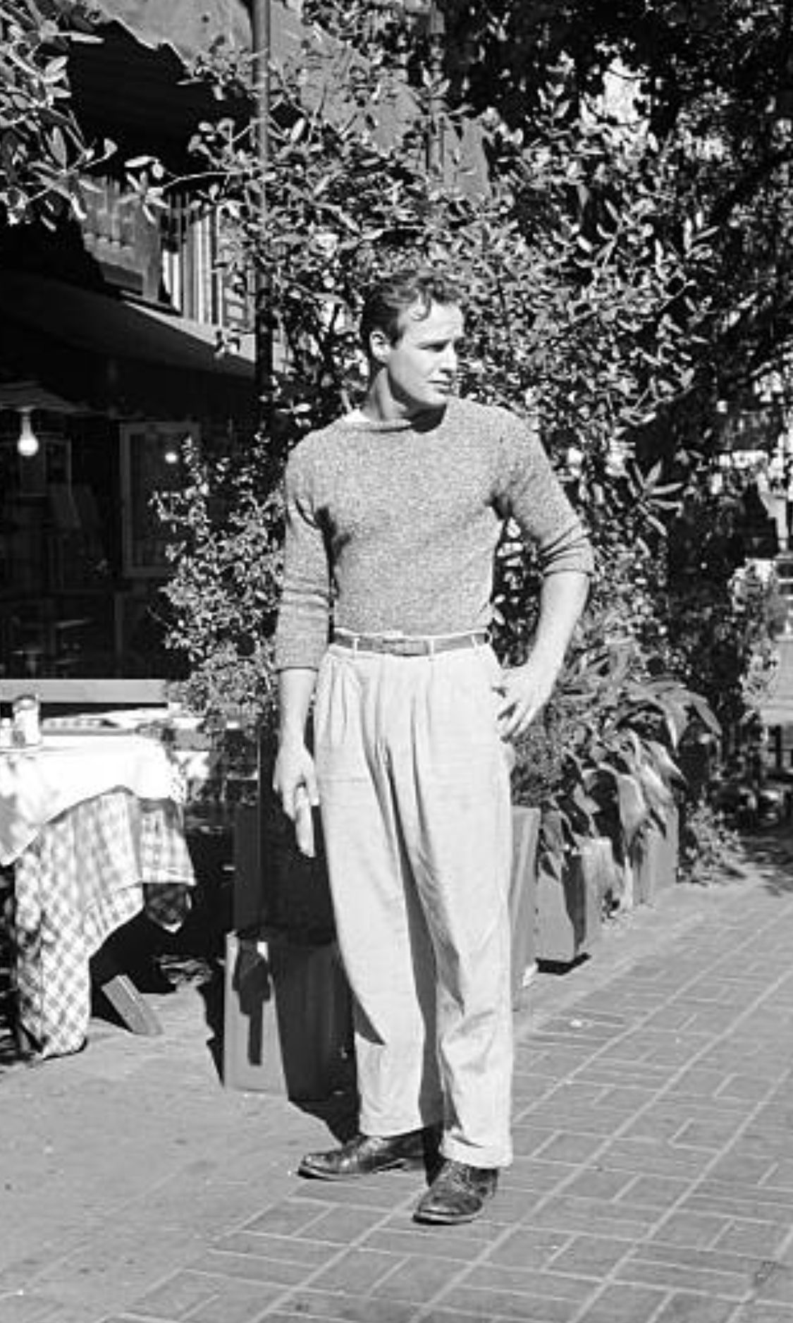>>18666450>Tight top / baggy bottom. Silly. WRONG. You do realize tight t-shirts became popular because of this guy, right?