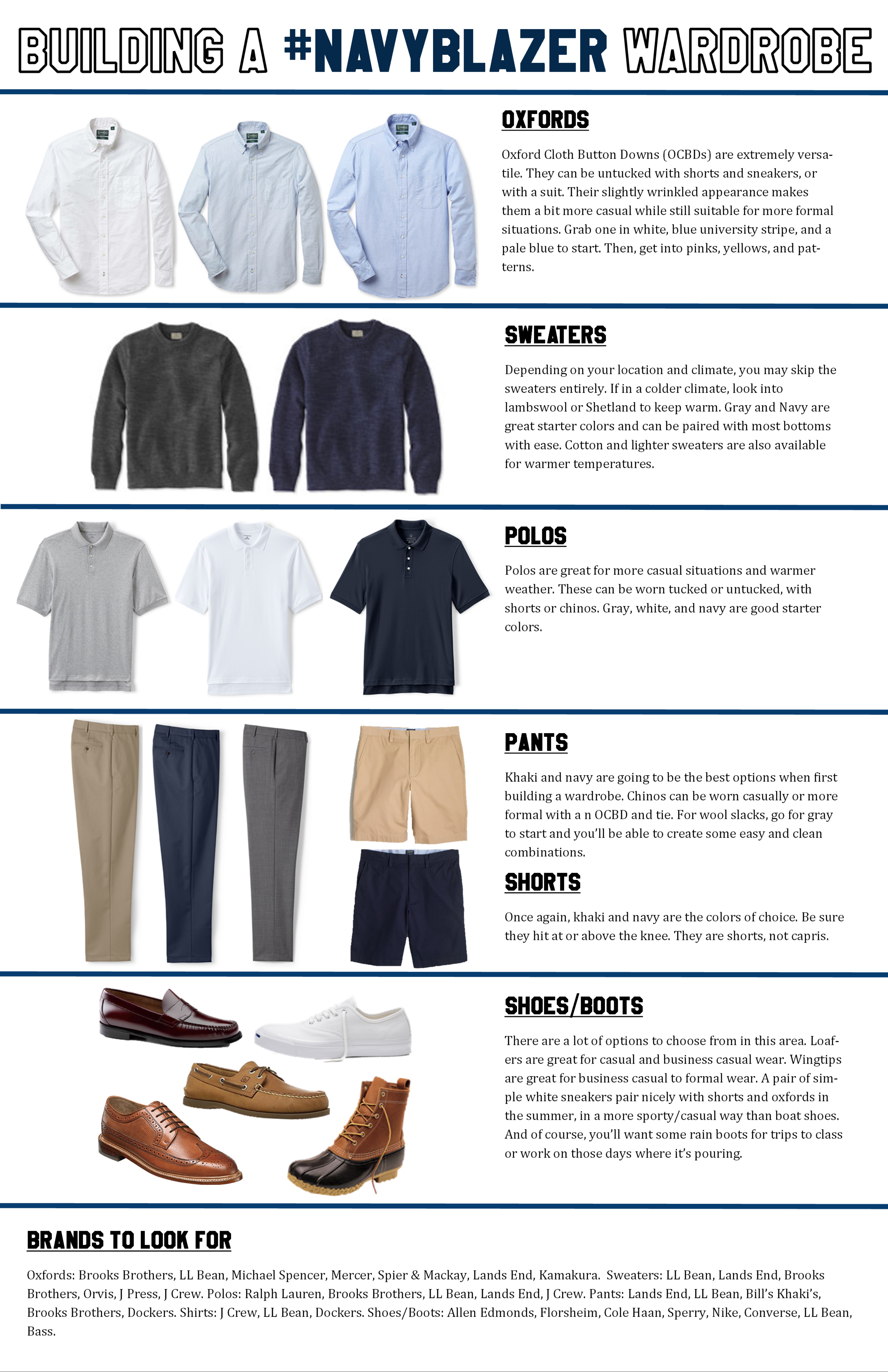 >>18673304Yes, maybe the autist in me but I just don't like the look of those.For shirts, look at pastel colours and striped. Get those as Oxford shirts, not dress shirts.And as the other anon said, Im not saying to get a bunch of full suits. But a blazer is not a suit.I would spend some time on https://putthison.com/start-here/and https://putthison.com/tag/guides/And yes climate matters. And your skin. Yes I am white.But guide like pic rel actually helped me also.OCBDA Sweater or Blazer over it if coldDress pants or Chinos- its that easy for me now
