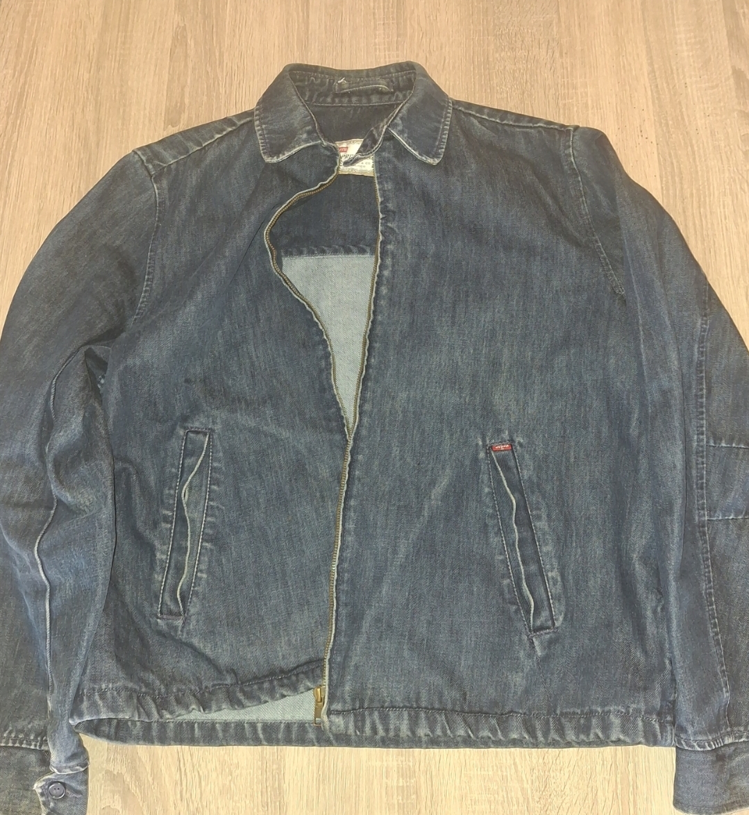I got this Levi's Staprest jackets for five eurobucks. Label says it was made in 99'. It's 60-40 cotton polyester. The fabric feels thick and stiff and the color is quite nice (couldn't get the exact shade on camera). Was mostly an impulse buy due to the price, honestly. Has some velcros inside that attach to nothing.