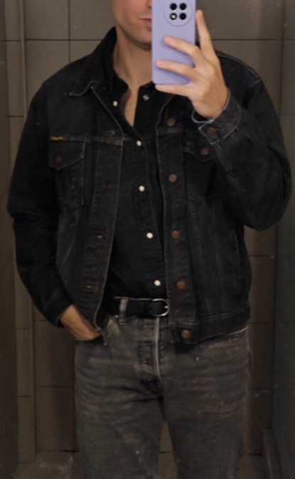 >>18679647People keep bringing up the double denim thing as some fashion sin but I've never understood the fuzz. Yeah maybe if you're hanging around very fashionable people and they expect you to put in more effort so you showing up to the club in your monochrome outfit it just creates a clash of styles. Still, black jeans with blue jacket is also an easy to follow rule similar to matching leather colors with the belt and shoes.