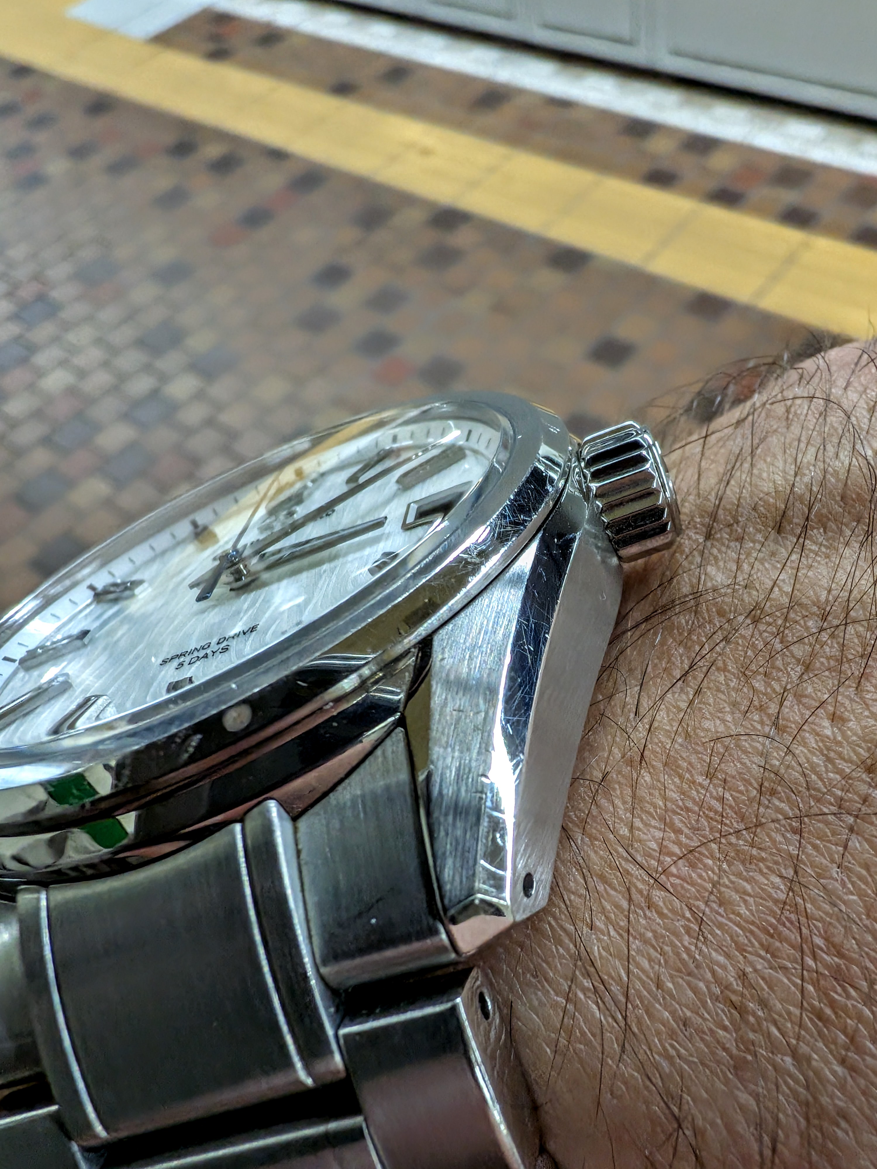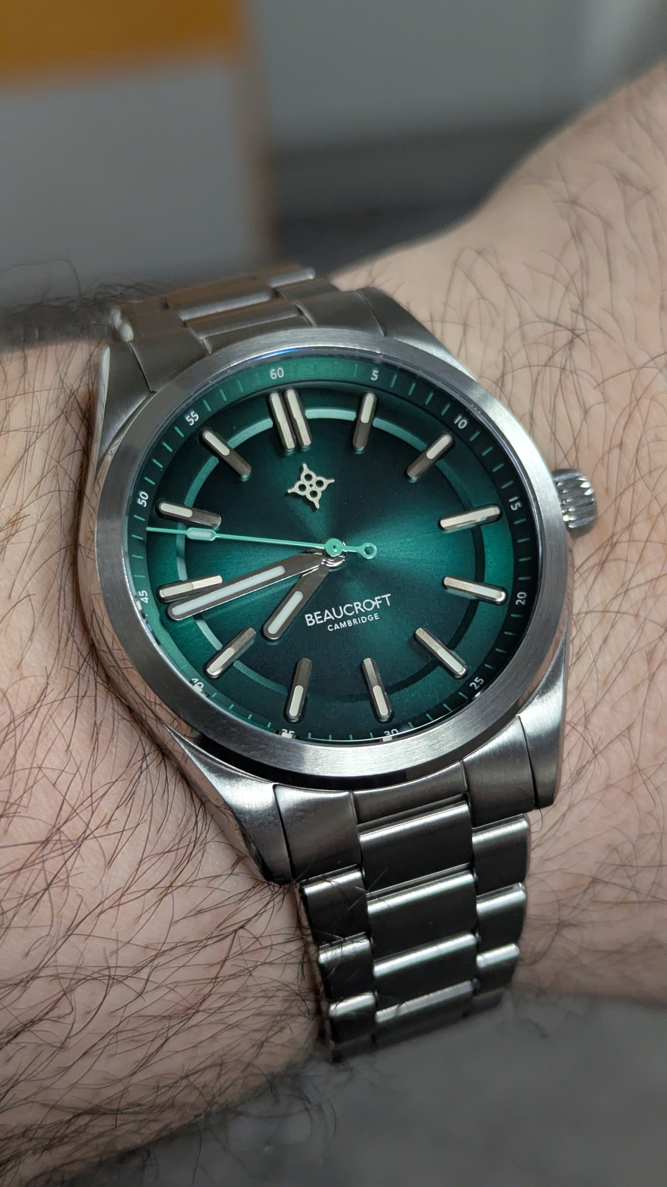 It arrived, finally. I couldn't be happier, it's everything I hoped it would be and more now that I have it in person. Stunning dial, completely clear crystal with zero glare, perfect solid link bracelet that's so comfortable, clasp is beautiful and has quick adjustment. I just can't stop marveling at it.