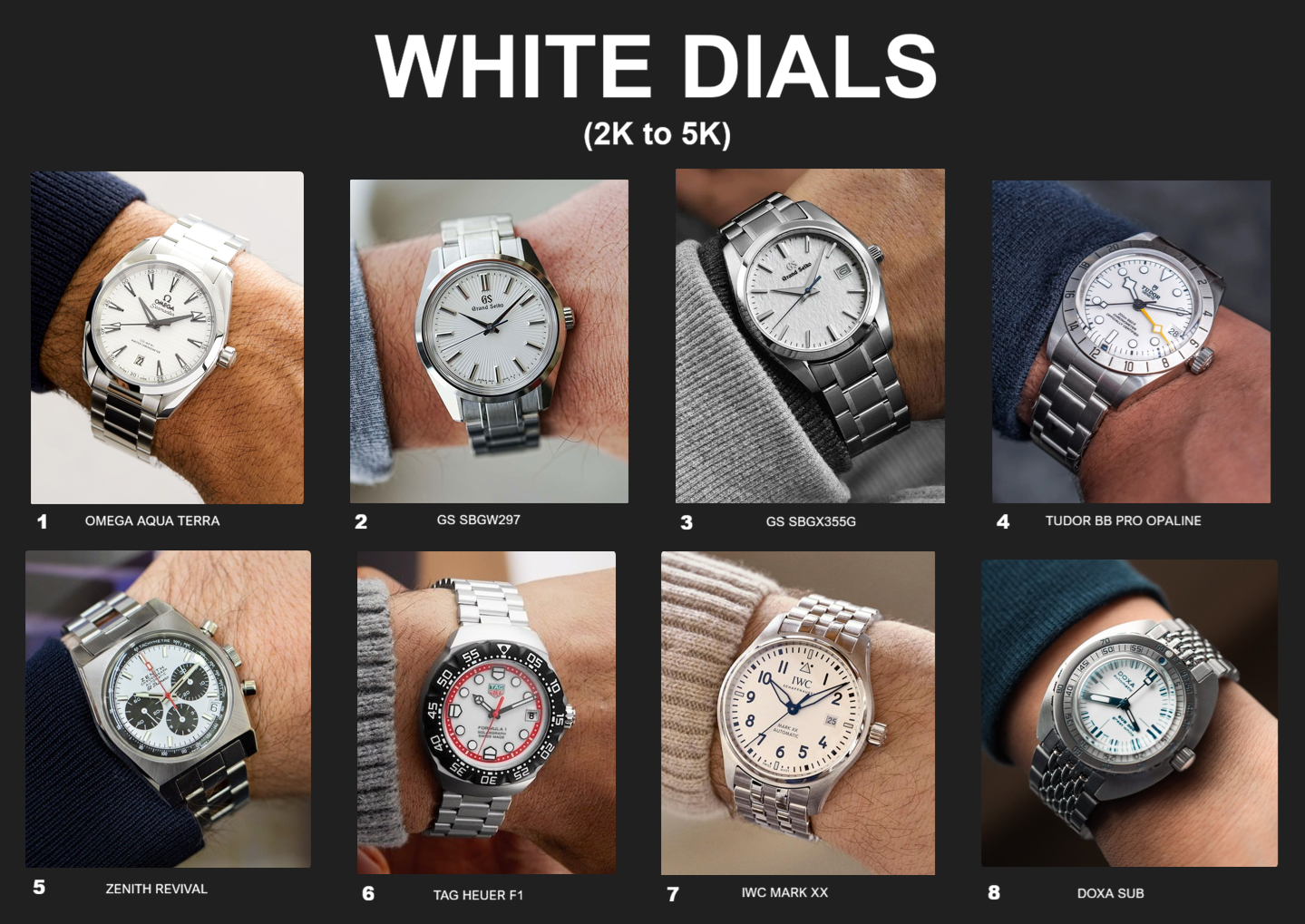 Expensive. The only ones I like are the omega and the iwc really. Not that into white. Or quartz. And grand seiko sure has been ruined by trolls on this board.