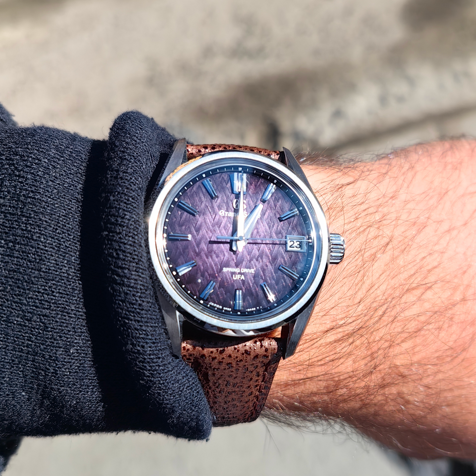 >>18681509Terrible mix, brown is one of the worst color to mix with purple. It's like when you mix a warm green and a cold green, it doesn't go together.Purple would go well with black, dark navy, yellow, orange, green. It's science.Also, the pattern doesn't match, in a bad way. The dial patterns are angular and the strap patterns (other leather grain rather) are dots. It would go better stripes or woven patterns.