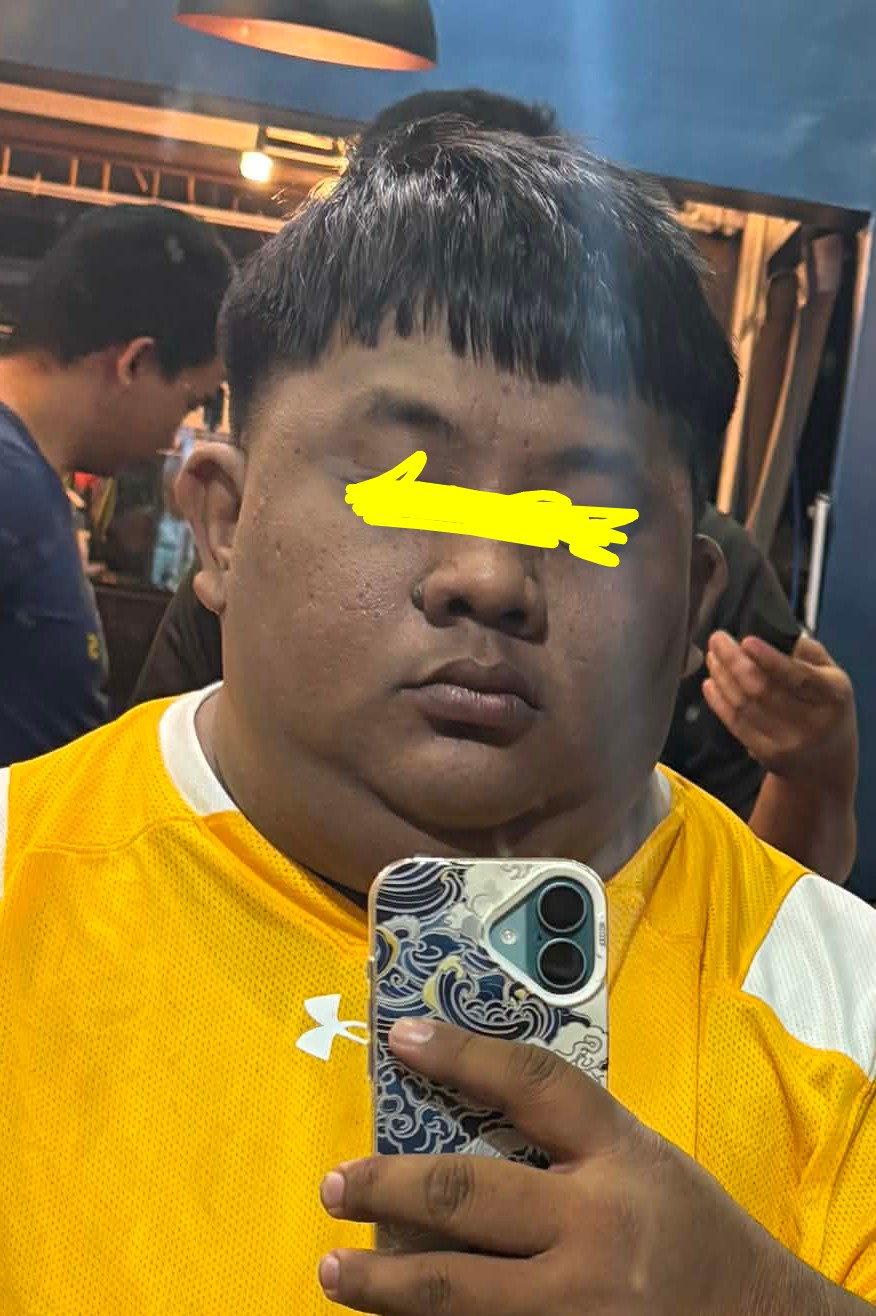 Did this fat lad cut his own hair?