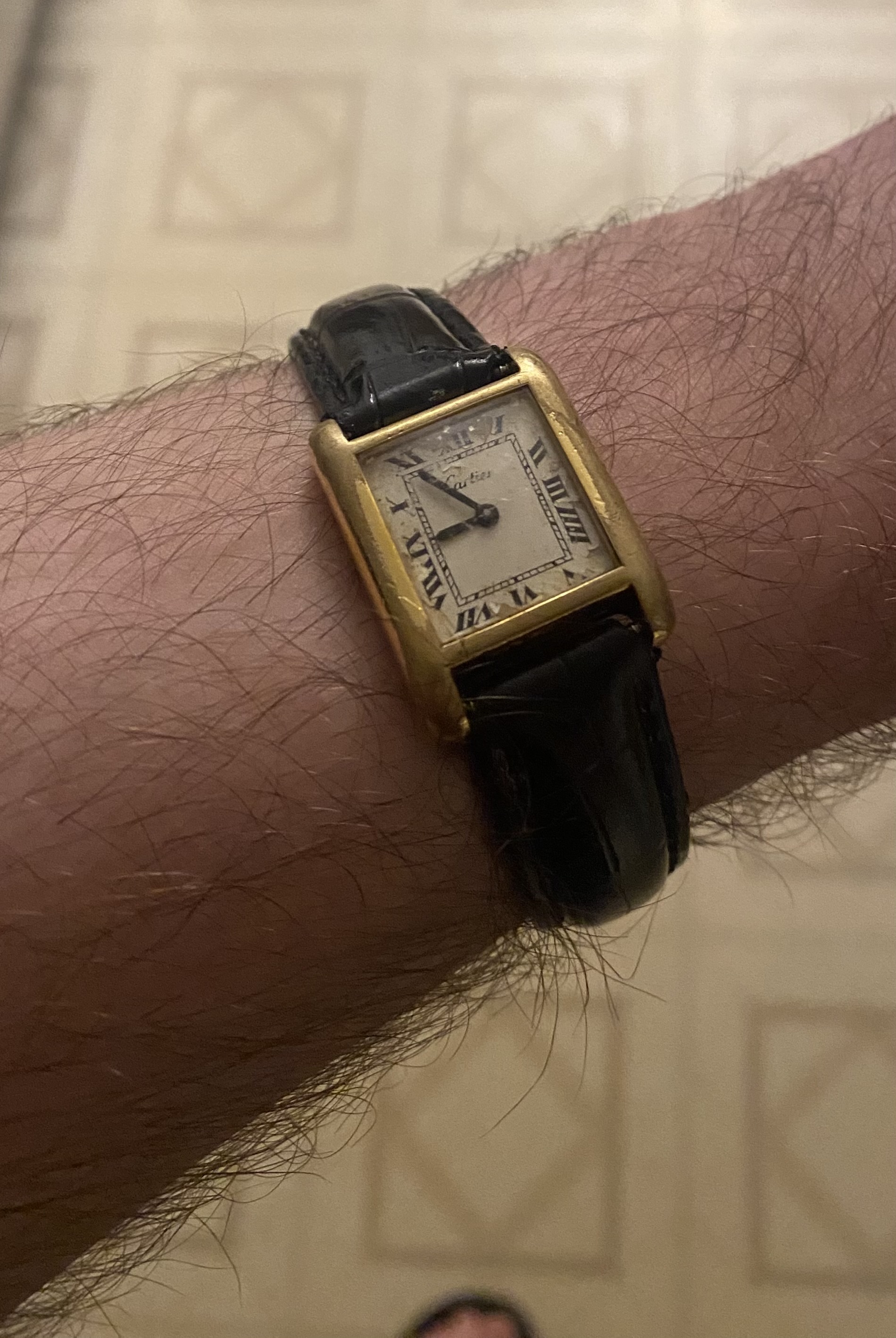 >>18690008I explained in another thread but the crown fell off somewhere (the crown isn't even gold anyway so that doesn't matter) and the gears inside were all rusted so I just wear it as a bracelet. I took it to a Jeweler and he said he couldn't fix the gears because they were too rusted but that I should still keep the watch and give it "lots of care" because it is still an antique Cartier wristwatch.