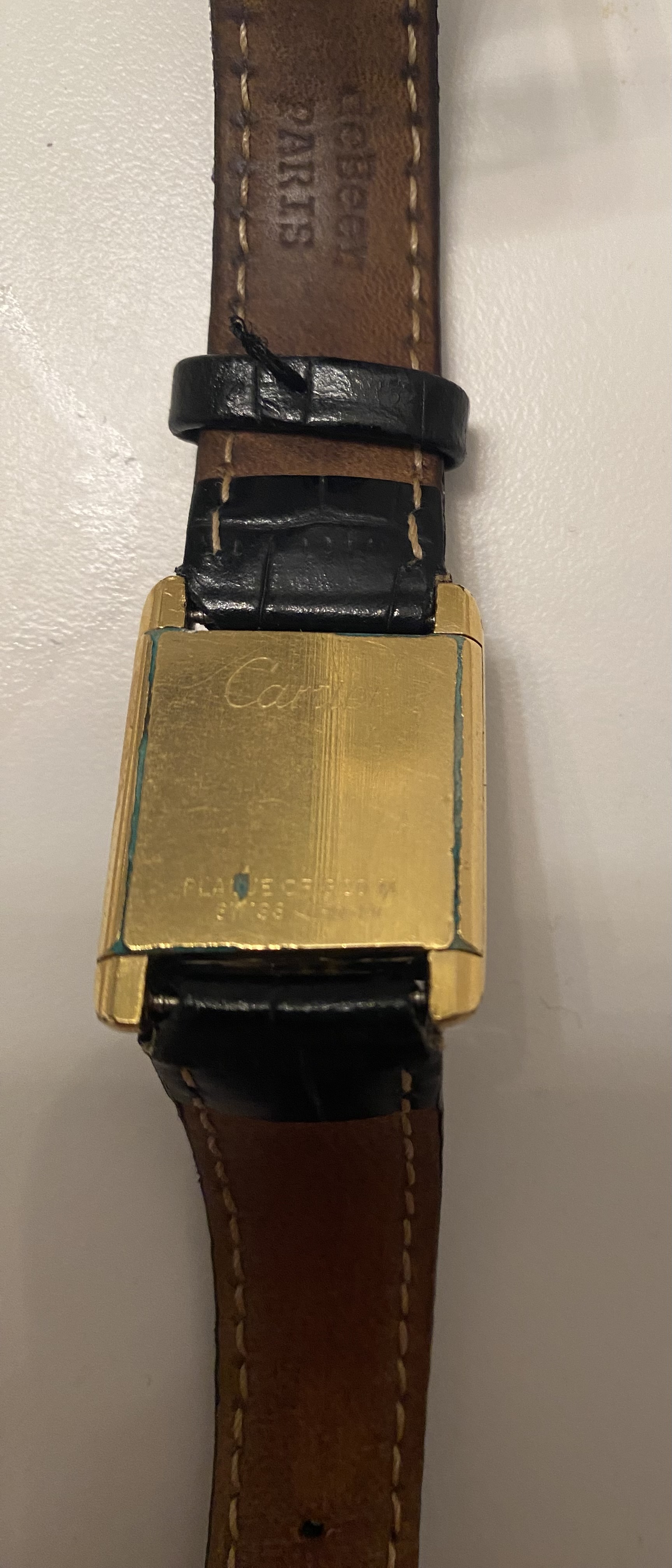 >>18690520This is the best photo I can physically take of it because it is hard to make out but it clearly says “plaque or G 20M”>The inscription "Plaque Or G 20M" (or sometimes misread as 620 M) on a Cartier watch indicates that the case is made of 925 Sterling Silver covered with a 20-micron thick layer of 18K gold. This technique is commonly referred to as "Vermeil," which is frequently found on vintage Must de Cartier watches from the 1970s and 1980s, providing a durable, high-quality plating rather than solid gold. Barnebys.comBarnebys.com +5I can’t get a closer picture than this with the light still making the words clear.