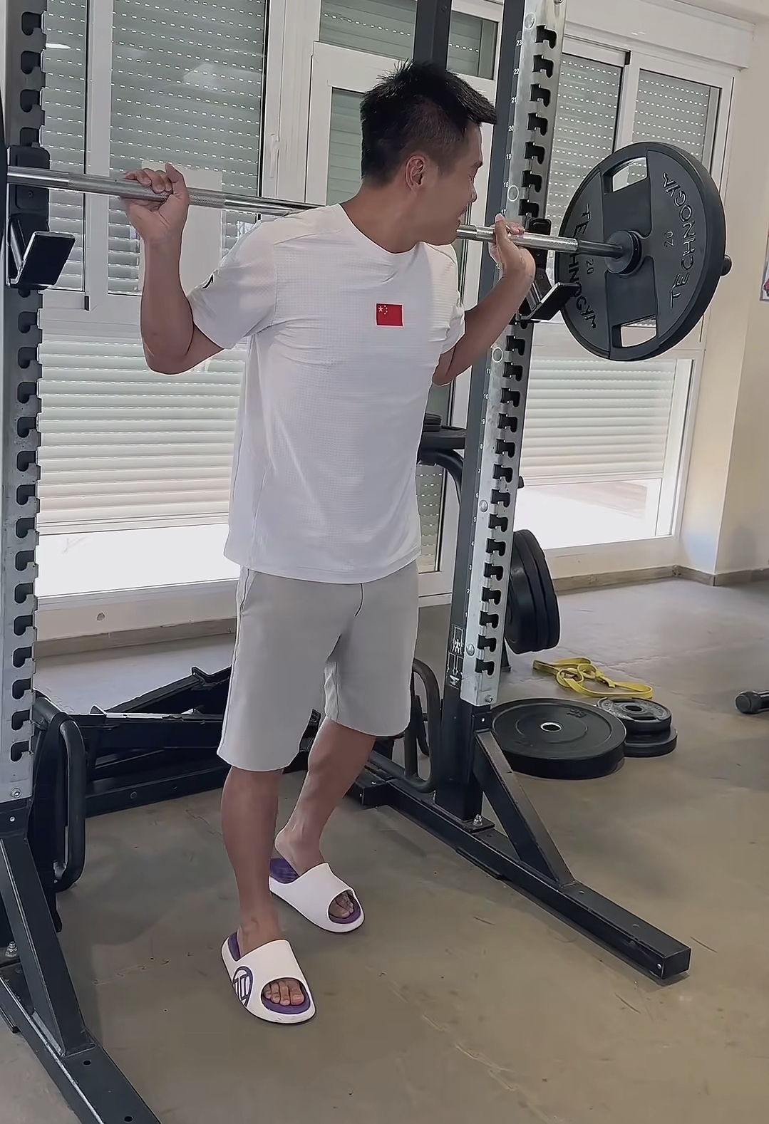 >>76746969>Lower back slightly rounded at the start, instead of almost hyperextended>Slight bend in the elbows>No triple extension>Feet never leave the floor>Bounces the bar off his hips