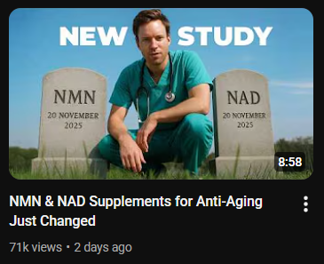 >>76947589>NMN & NAD Supplements for Anti-Aging Just Changedhttps://www.youtube.com/watch?v=lt8Z0fNukBw