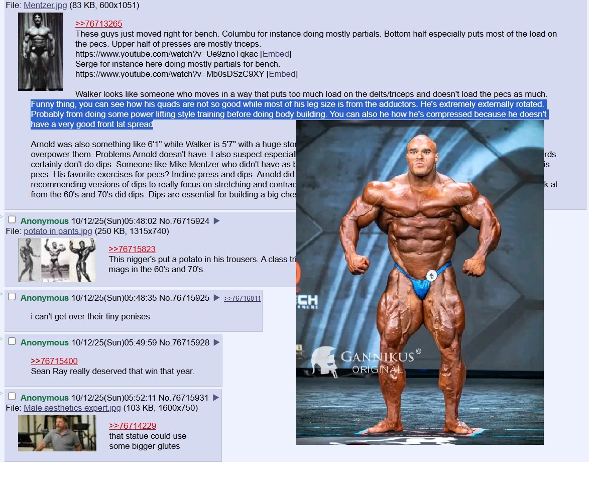 >>76715066More info:> Anonymous Fri 23 May 2025 15:07:44 No.76170536>He posted body once in a Derek thread and got absolutely roasted, now he backpedals and claims it “wasn’t him”>He’s a skinny weak Hapa manlet obsessed with being lean