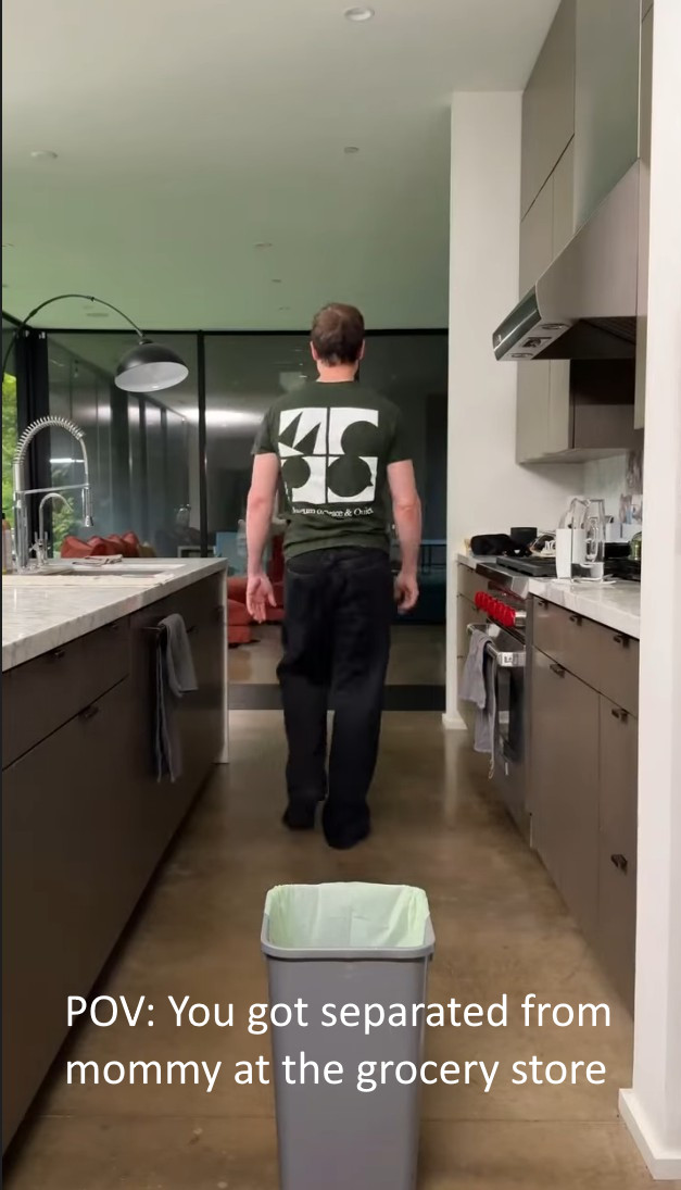 Dude's supposed to be a billionaire and he can't afford anything better than a Wal-Mart trashcan with a bag that doesn't even stay on when you throw anything away.Anyway, it's sad that a grown adult is spending his time making videos like this.