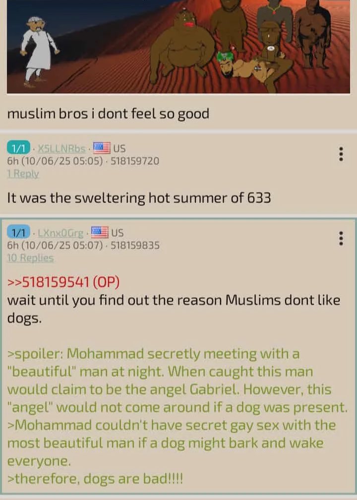>>76745523Praise be to Allah and his most Holy Prophet Mohammad sallallahu alayhi wasallam. He was ridden by many strong dark Zutt men with large penis in the desert so rigorously he was in pain and injured and had to sleep a long time in the lap of his companion, who sat down to protect his back passage, safe behind the line drawn in the sand by the Prophet .