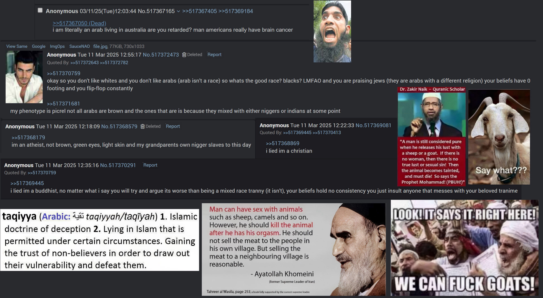 >>76745523Look up what Naskh is. Islam is contradictory with itself. Muhammed is at first peaceful when he has no army, then when he becomes a warlord it suddenly becomes violent, and the violent verses abrogate the previous ones due to naskh. Does that sound like the word of God to you? Naskh means that when two verses in the Quran contradict each other, the later verse is the correct one and cancels out the earlier one.This is stated in the Quran itself (2:106 and 16:101). Few non-Muslims know about naskh, and Muslims exploit this ignorance to trick outsiders about what the Quran really says and teaches. Naskh is also why reading the Quran in chronological order is important. Traditionally, the Quran is not arranged chronologically, which makes it difficult to determine which verses have been abrogated.Muhammed is such a selfish hypocrite that there's a ayah (verse) in the Quran about how people can't marry his widows after he dies because "in the sight of Allah it would be a great sin". Even though he married other men's widows. The same verse also says not to stay too long in his home having conversations after a meal because it would "trouble him", and that he was "too shy" to tell his guests directly.https://legacy.quran.com/33/53And keep in mind this isn't a hadith (personal words from Muhammed that aren't directly divinely inspired). This is supposed to be God saying "no u cant marry muhammed's widows after he dies!!!"