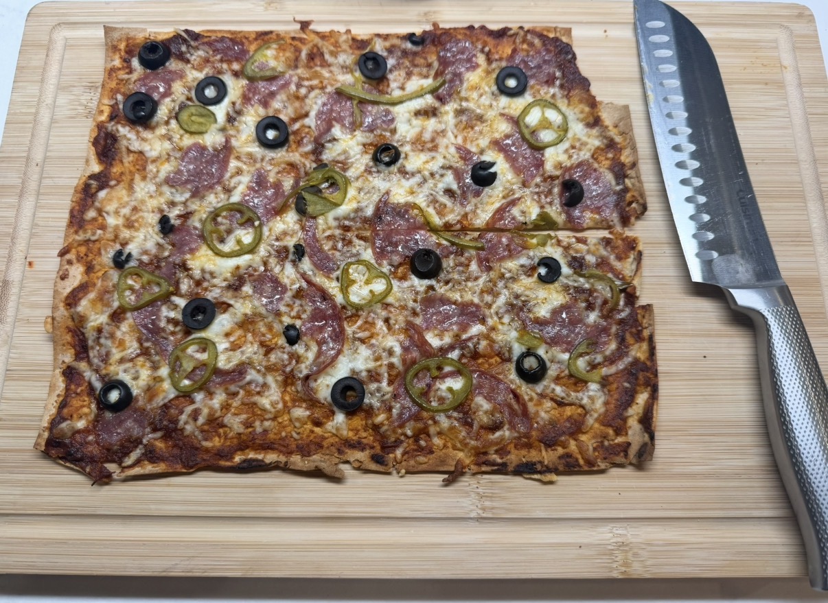 I’m a big (heh) pizza fan and have been having a lot of fun with lavash bread lately. This one was 530 cal, 45g pro, 24g carbs (9g fiber).