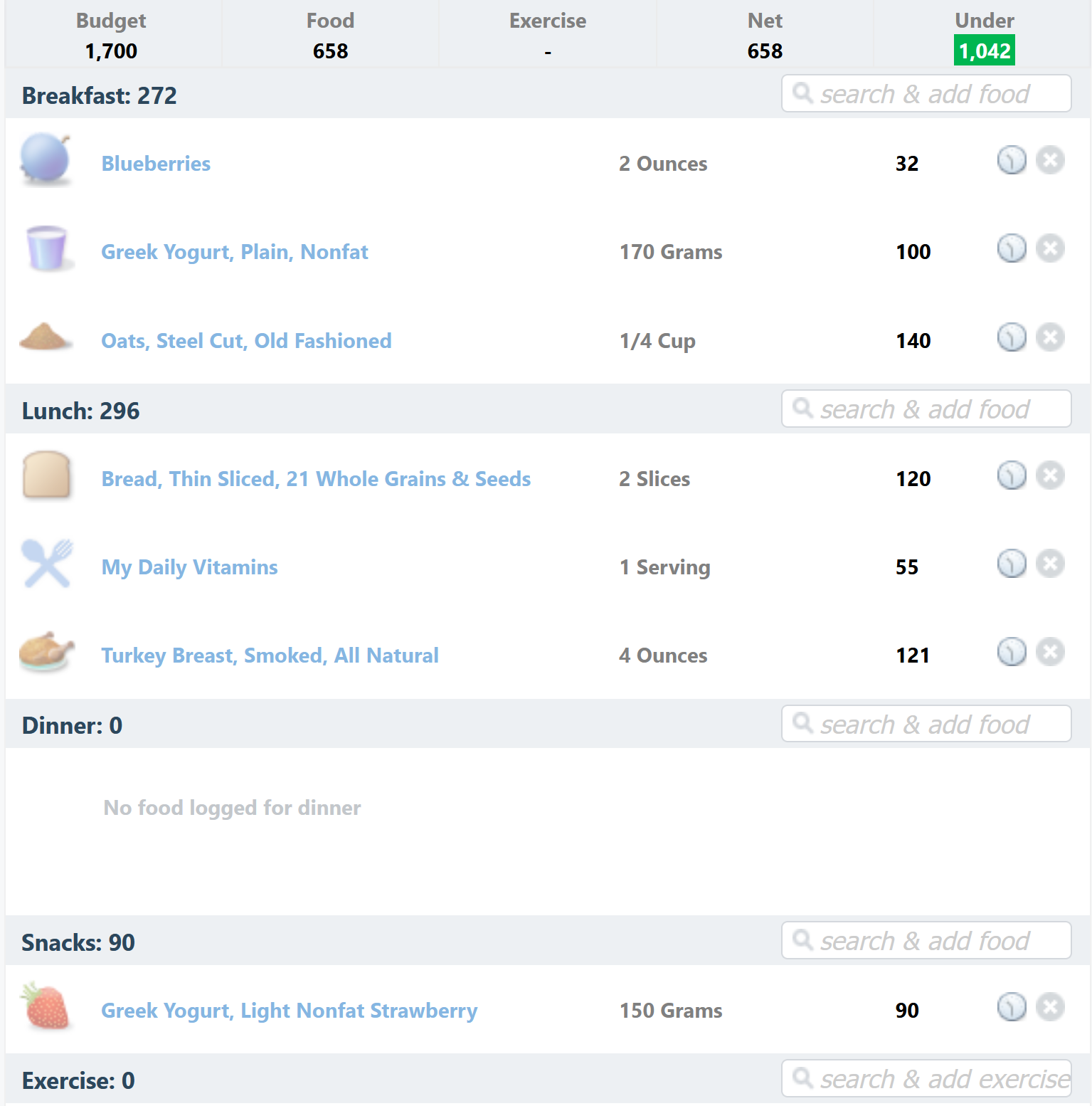 >ate 200 cal less than I thought I did yesterday because I accidentally put in 2 tablespoons of butter in MFP instead of the 2 grams I actually used