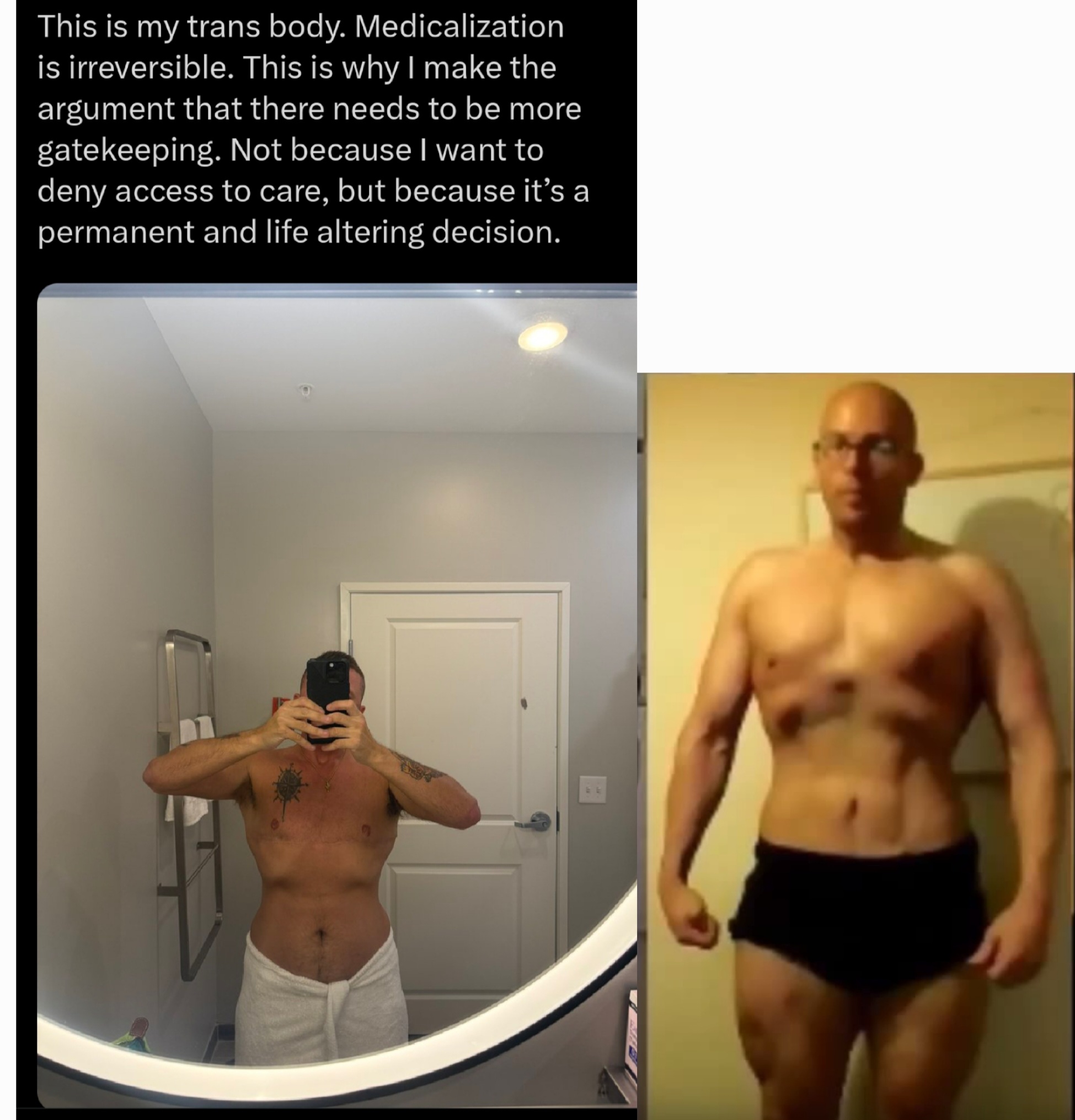 >>76759243That’s a creative comparison, but pretty far from accurate. Lifting weights and managing hormones under medical guidance isn’t “body dysmorphia.” By that logic, anyone who gets braces or cosmetic surgery has it too. It’s fine to dislike steroids or disagree with hormone therapy, but pretending they’re the same thing just shows you don’t understand either.