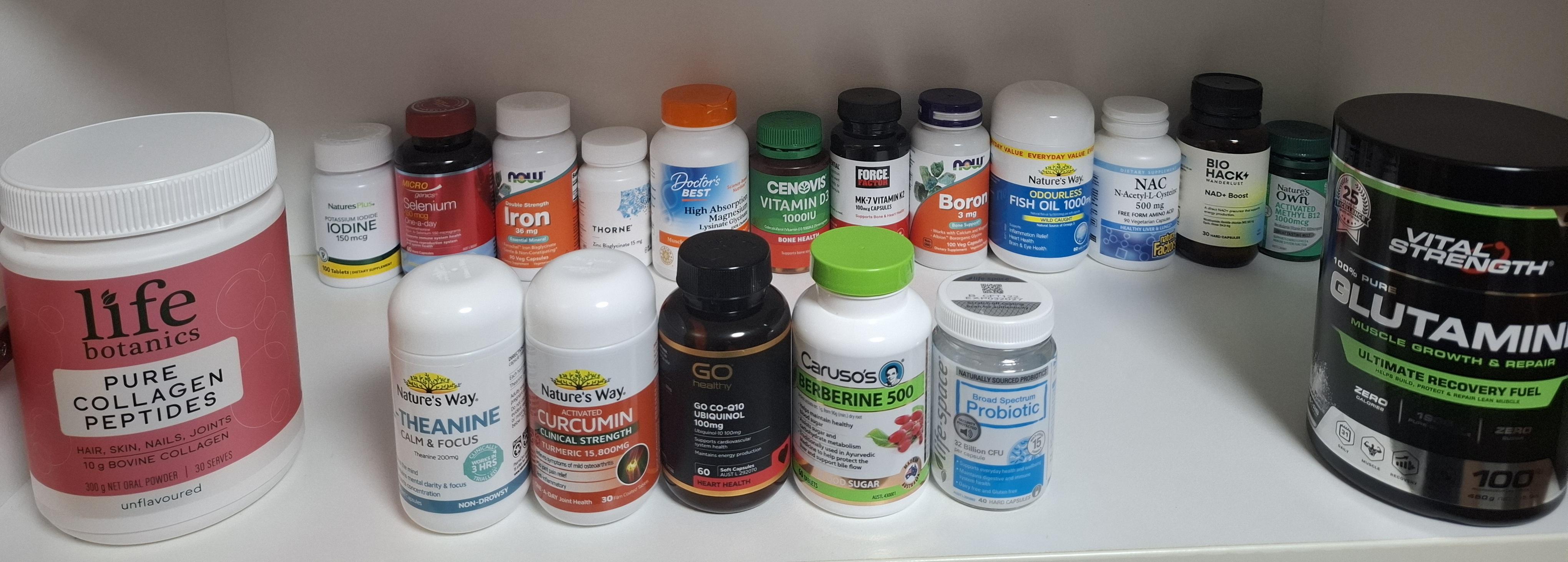 >>76764747ZincMagnesiumBoronK2DOmega 3Preworkout that has B vitaminsThen slightly more atypical:TadalafilCreatineNMNNAC + collagenFisetin