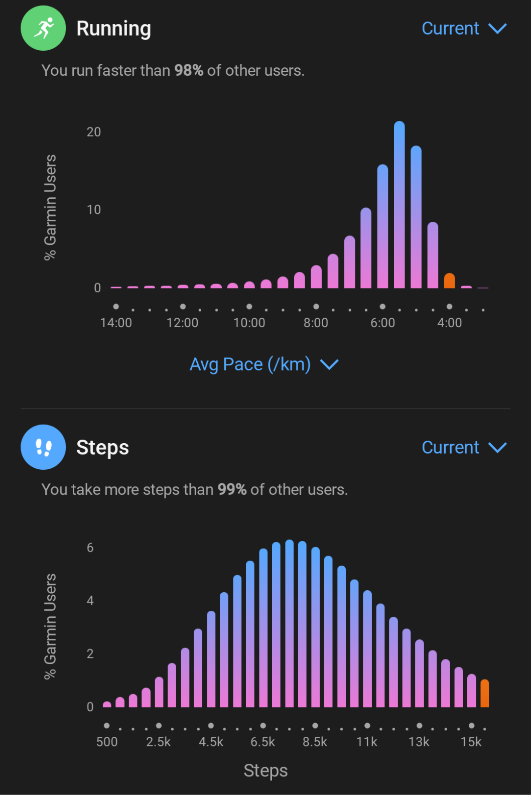 I am way too obsessed with these charts lmao.I wouldn't be upset if my average pace went down a bit, but as long as I keep improving in terms of vo2max etc. I do like to stick to relatively low volume, "high" intensity instead of becoming a z2 fag.