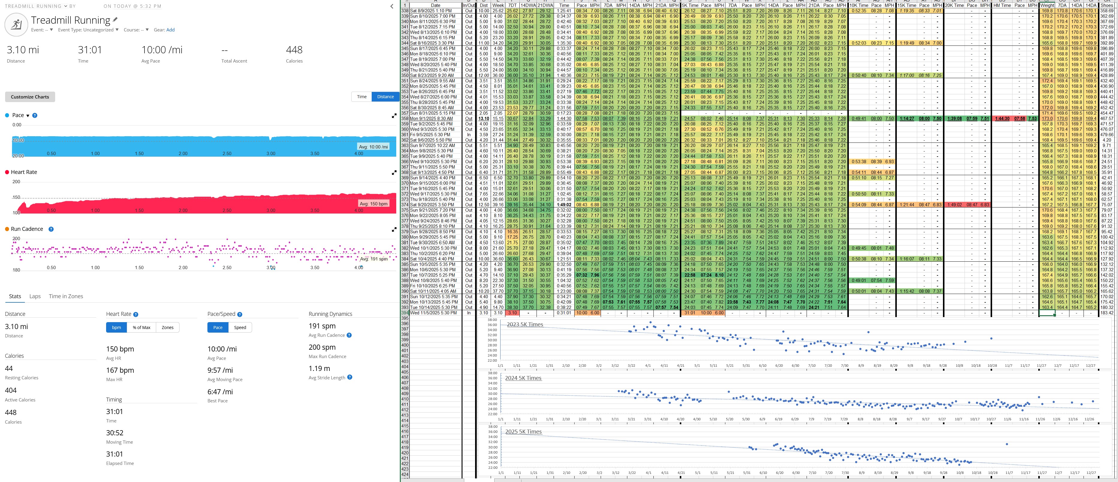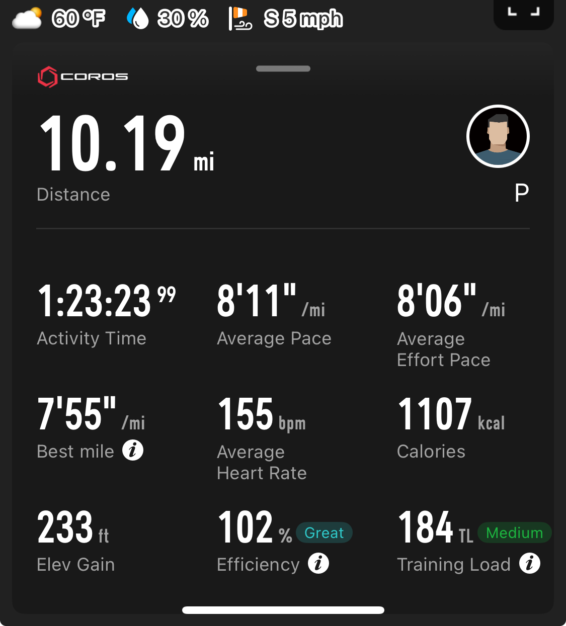 Hamstring/butt hurt a bit, but I was able to do a full 5K at least. It was more of a soreness with occasional tingles of pain, but definitely noticeable. It's fucked up how high my HR got though, I lost so much conditioning. Not even a month ago, I had to PUSH to get it above 150, and now I nearly hit 170 BPM doing fucking 10 min/mi. Going to take another couple days off to let it keep healing.
