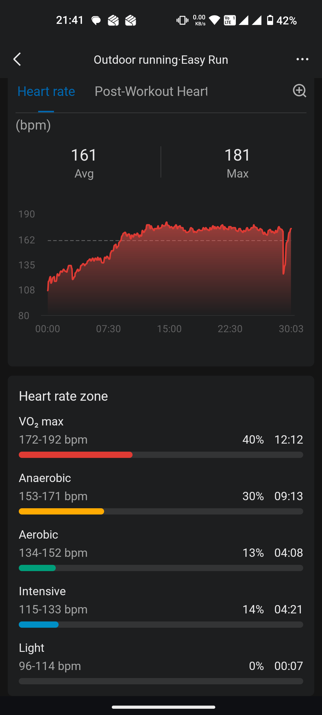 Should I be worried that this is my HR during a shitty, 7 min/km easy run? I am getting back to running after a long time so obviously I am starting almost from scratch and I never really got fast, my PB for 5K was 23 minutes.However I remember that when I was trying hard during those 5K's my HR was above 200 BPM towards the end of the run and I felt OK with that effort. So maybe my zones are quite high? And my HR down really quickly after the exercise. Living in a big city and stress can also be factors here.What I am worried is, is that I am putting too much stress on myself, even while trying to run as slowly as I can.