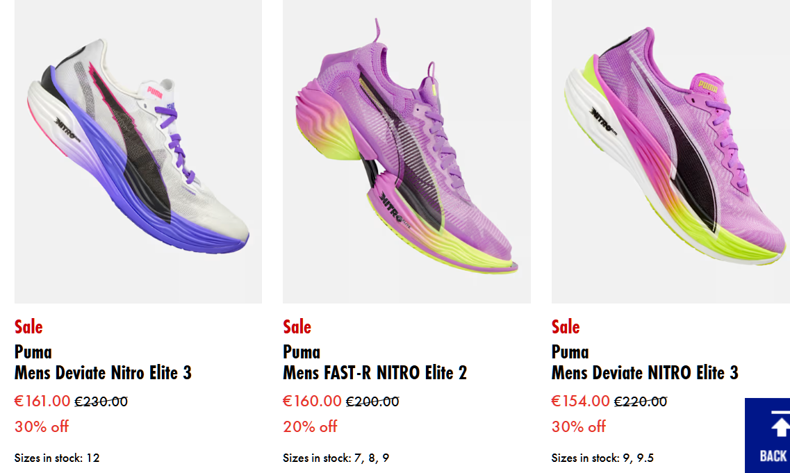 >>76798793Usually you can find the top of the range stuff on sale somewhere. I got the Deviate Nitro Elites 30% off a few weeks ago. Great shoeAlso if you are only using them for racing then they will last for years so might be worth spending a bit extra