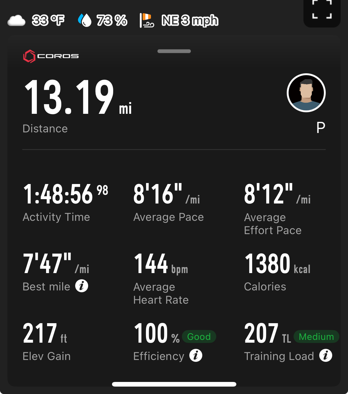 First half in over a month. IT Band was good. Cold run though. Any recommendations for gloves. I got shit circulation in my fingers and they always go numb.