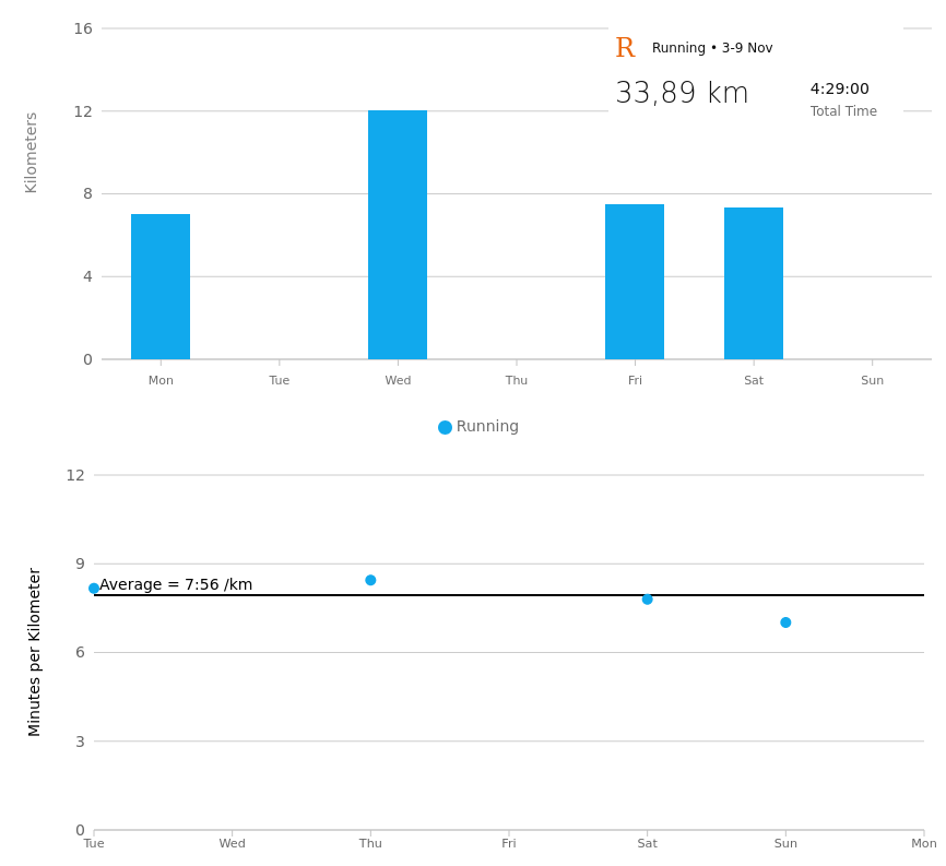 Do you think eventually I can actually run 4 (or 5) times a week and not jog anymore if I do this about forever? I'm 35.Not sure why pace is shifted by a day. On Saturday I did intervals ig where I was aiming for 6min/km, 4x(800m+400m slower) with some more jogging before and after.