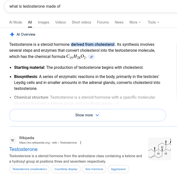 >>76851322>carbs are the main building block for testosteroneNo, they aren't. FAT is the building block of testosterone. How can anyone be so shameless to tell such a blatantly wrong lie?Are you maliciously trying to mislead people, or just ignorant?>>76851179You didn't give your body a proper energy source. Your body isn't supposed to use protein for energy.It would've worked well if you had increased the amount of fat from animal sources (only animal foods have fat, plants have OILS, which are not the same).