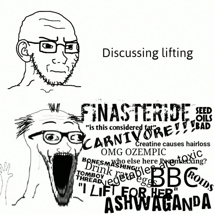 >>76851179You know, most people would just ask someone. or the internet, ChatGPT, whatever, what a good diet is for building muscle. But a 4chan autist has to test everything on themselves first before coming to any conclusions.