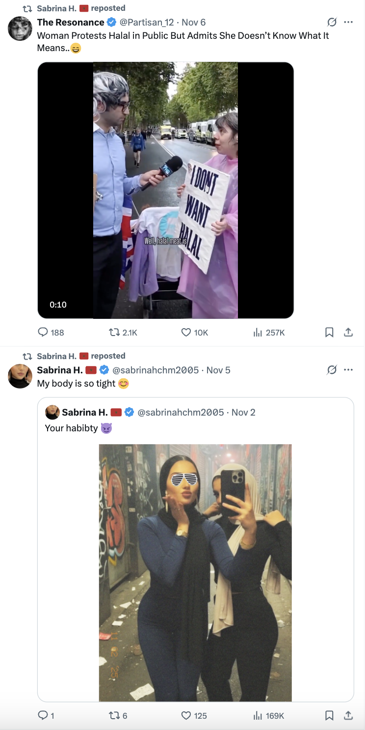 >>76856104No lol, you should see her Twitter though it's hilarious, half her posts are attempted findom bait where she begs white men to send her money, and the other half is complaining about Islamophobia in Europe