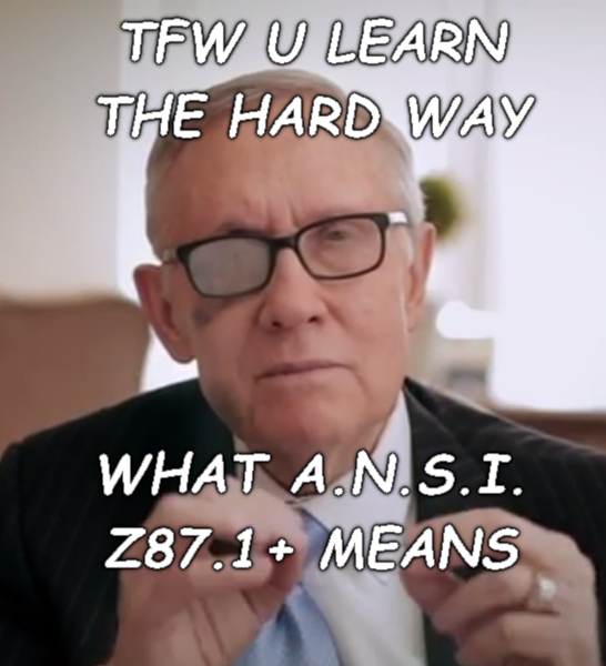 >>76961042Niqqa I just wore Z87.1 safety glasses underneath Z87.1 safety goggles to go power-walking around the block a few times in windy-ass weather. Why fighters have such eye protection skill issues? Do they think they're picrel l8 Nevada Senator using resistance bands? kek.