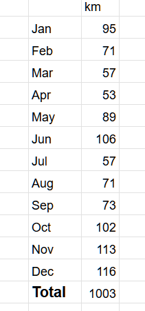 got 1000km done anyway. we're trending upwardsvery good fitness year. did 4500km cycling and a lot of stuff in the gym as well