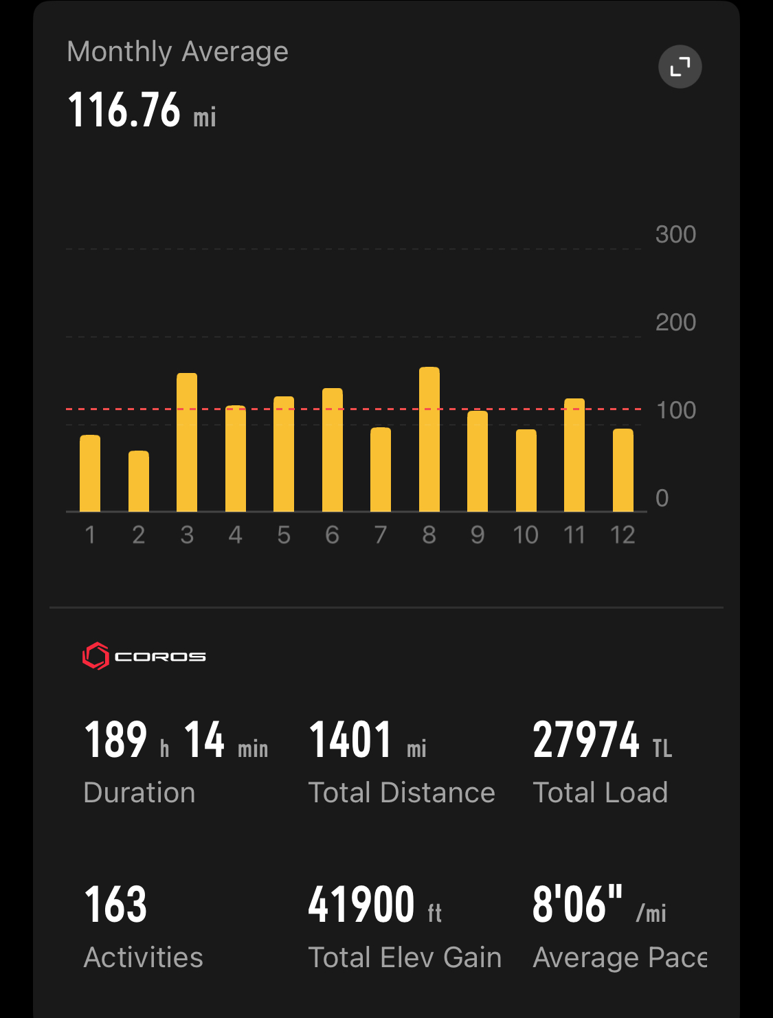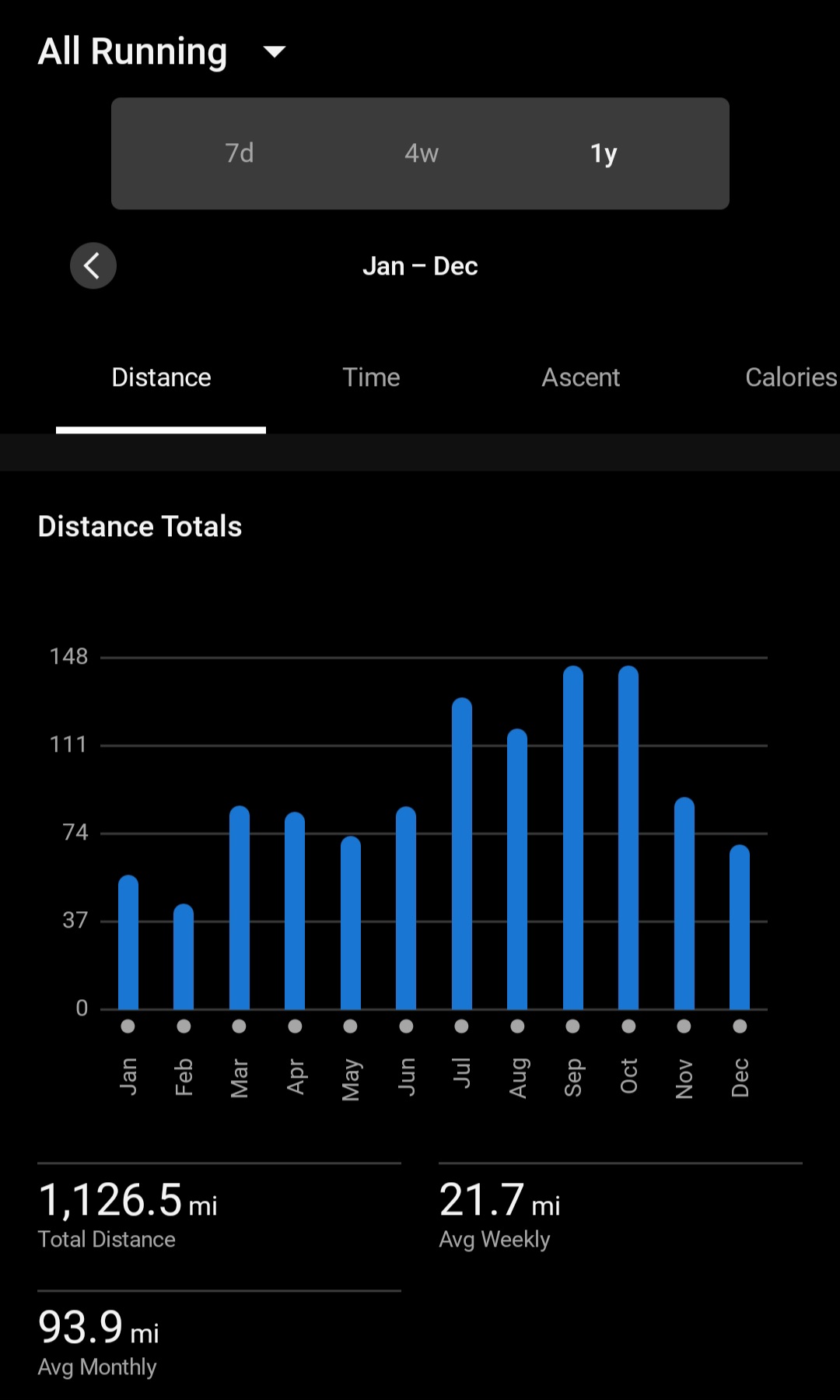 >>76964105Beat out the previous year by about 60 miles. If winter weather cooperates and my hip stays healthy I think I can get 1500 this year. Wildfire smoke was bad this summer too so hopefully that cleans up this summer. Planning a 50k and marathon this year.