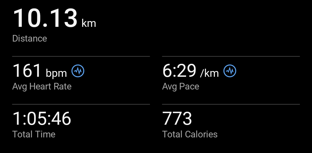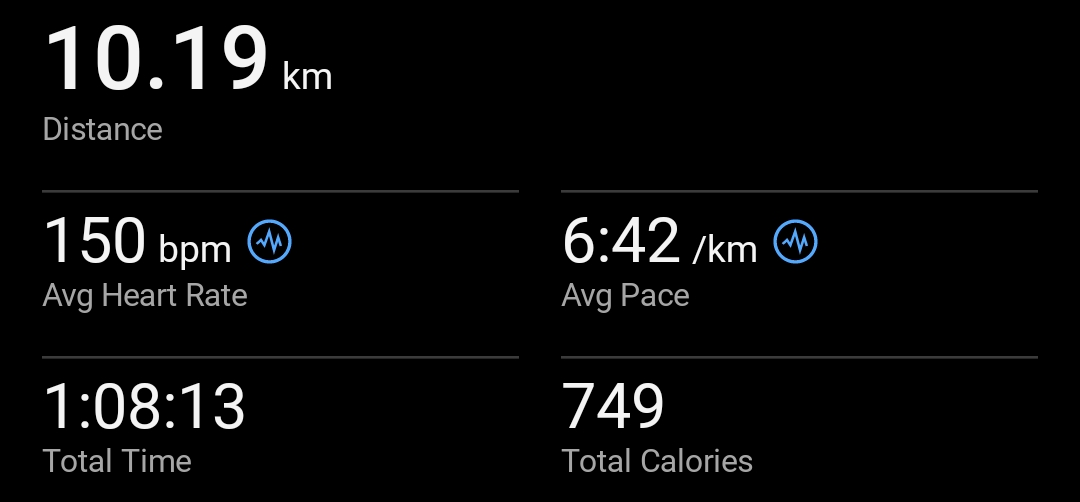 >>76965271I did 10K too this morning, I'm also slow.I did intervals and afterwards since I was close to 10K in less than an hour I said fuck it and sped up a bit, got to it in 59m30s, so that's nice. Average bpm 162 though.170 average on the 800m intervals themselves at about the same pace as your mate.Kinda happy I got it before 2026 ig but that wasn't really a goal.
