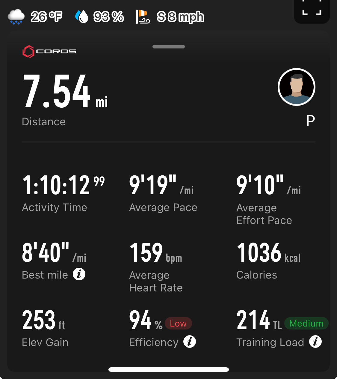 >>76982986-4°C, -9°C felt. Like, 5cm (2inch?) of snow. So much more tiring than usual, so much for easy, nearly fell a few times. rip the good heart rate I've had lately.>>76983432It sucks so much. I'm doing intervals tomorrow but I'm going in the city, I'm hoping the running track there is open to all, and will be clear. I really don't want to do that on the usual countryside path where I know there'll be ice (there's water running in a few places), frozen mud and of course half melted/refrozen snow, all under a thin layer of new snow.
