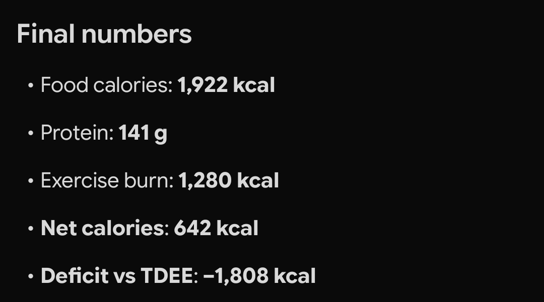 >>76985317My maintenance is 2320 and I only ate 900 calories and I feel fine.