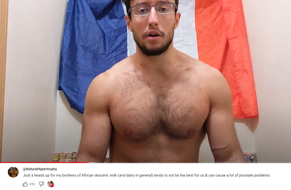 >>77000408>his French flag in the background looks like he just wiped his ass with itHe has shit genetics. Can't train for shit despite so many years lifting. He's lazy. Pseudo intellectual. This retard is so autistic that he ignores shoulder training to look like his incel anime character. He also has a shitton of food problems. And faggot is shilling for non-natty fakenatty roidtrannies like George and Baldfuck Omniman.He's a dumb fuck.Not only that, he says bugenhagen is natty. This is something fake natties always do, defend other fake natties because then their physique is protected. He didn't just defend him either, he acted like if you don't think Bugenhagen is natty then you're an idiot.It's two claims from a supplement video where he claims he doesn't take vitamin D because he "gets sun" by taking his shirt off at the office and running around outside, in his slacks. The women story comes from his dating advice, I'm not kidding this guy actually makes dating advice videos, where he claimed some milfs were following him and he had to "hide behind a dumpster" because he didn't want any.I've watched more of his videos than his diehard spammers. I spent a summer just building fences while listening to almost his entire video backlog. I can't/won't go get a timestamp because that would involve me listening to 2 hours of filler to find the quote but he's proud of that story he invented in his head so just ask him how he gets vitamin D in a Q&A.