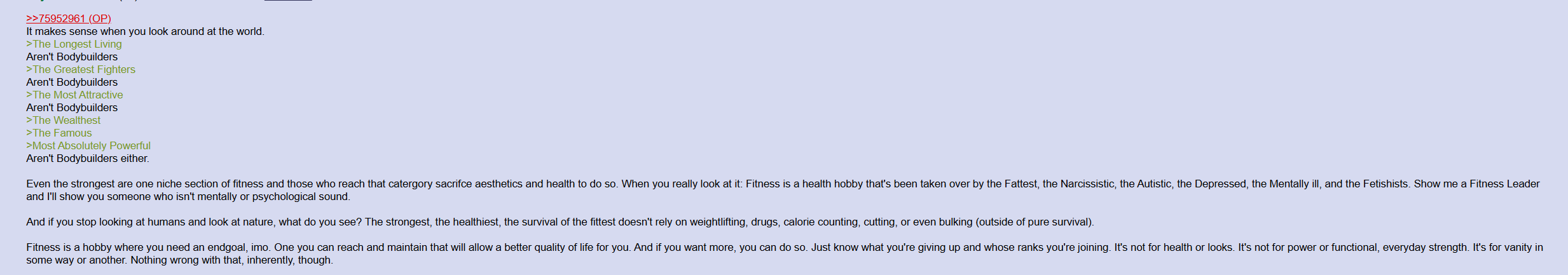 roidniggers and bodybuilders are both unhealthy and mentally ill
