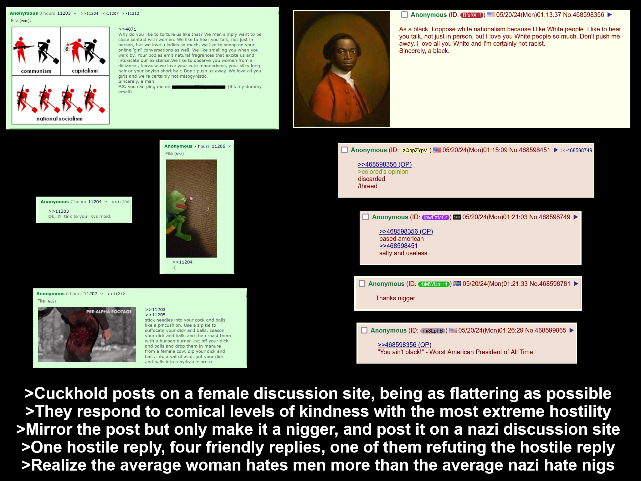 >>77036309>>77036329it's supposed to be a humor threadthe irony of >>77036329 is that she's doing the exact same thing whilst trying to be funny, one of those i'm different i'm one of the guys!! types who isn't different but who's just trying a slightly different method to achieve the same result; though i must mince those words because it's not a different method it is the same method albeit with a slight semantic tweak, in conclusion they are 2 sides of the same slut coin>FAQno, i am not a faggotno, i am not a virginno, i will not post body - though that wasn't a question but a commandyes, i do disengage my psoas in every exercisenice try bot :D